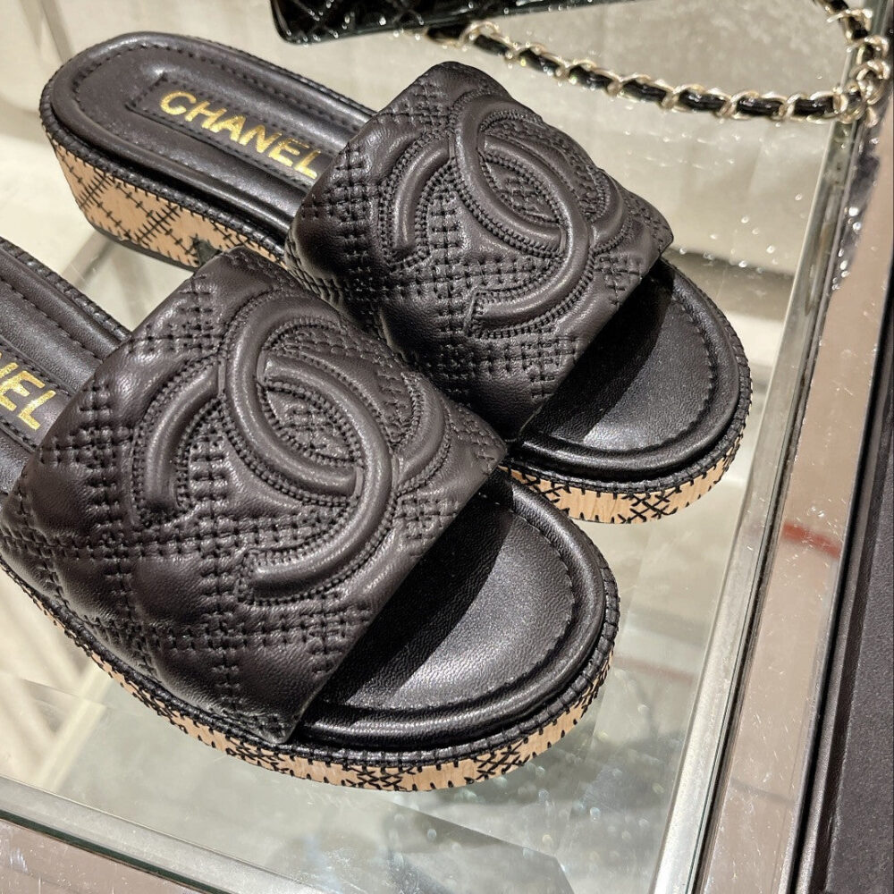 • Chanel new wooden heel slippers
