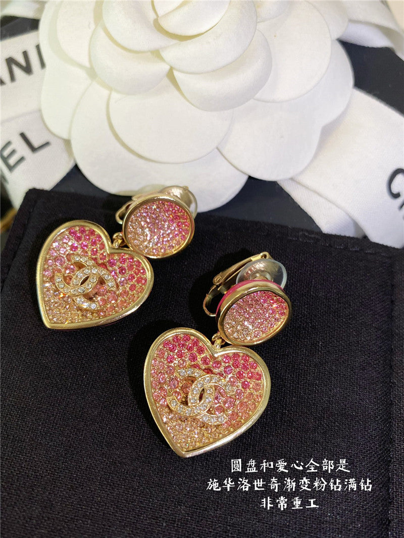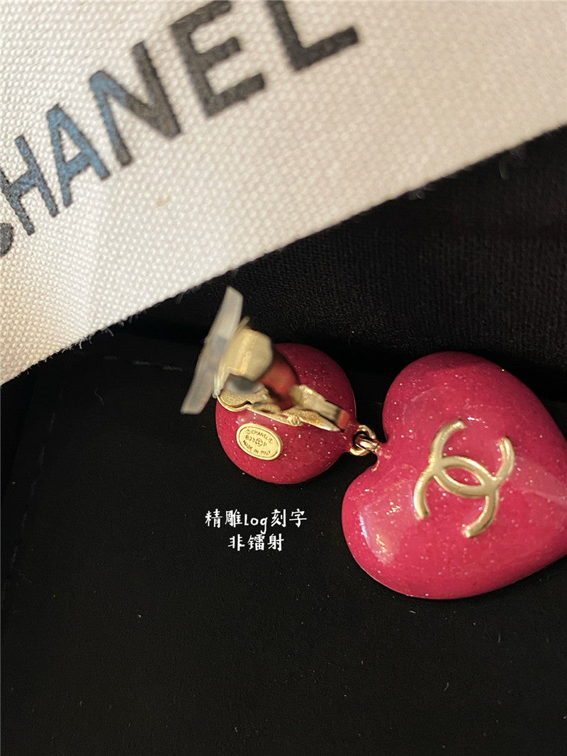 chanel peach heart shape ear clip