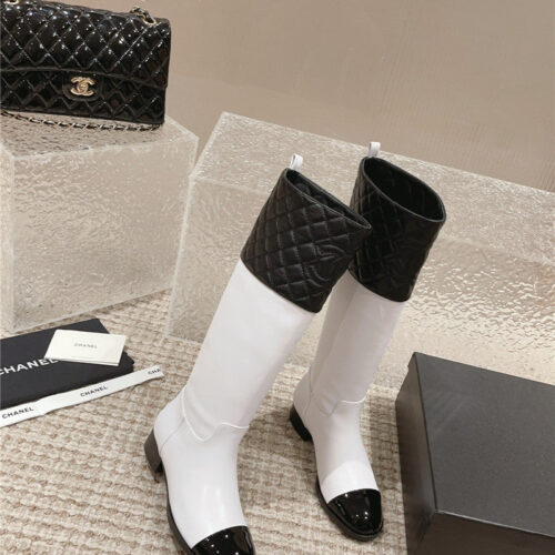 chanel retro small round toe stitching design boots