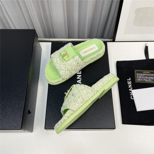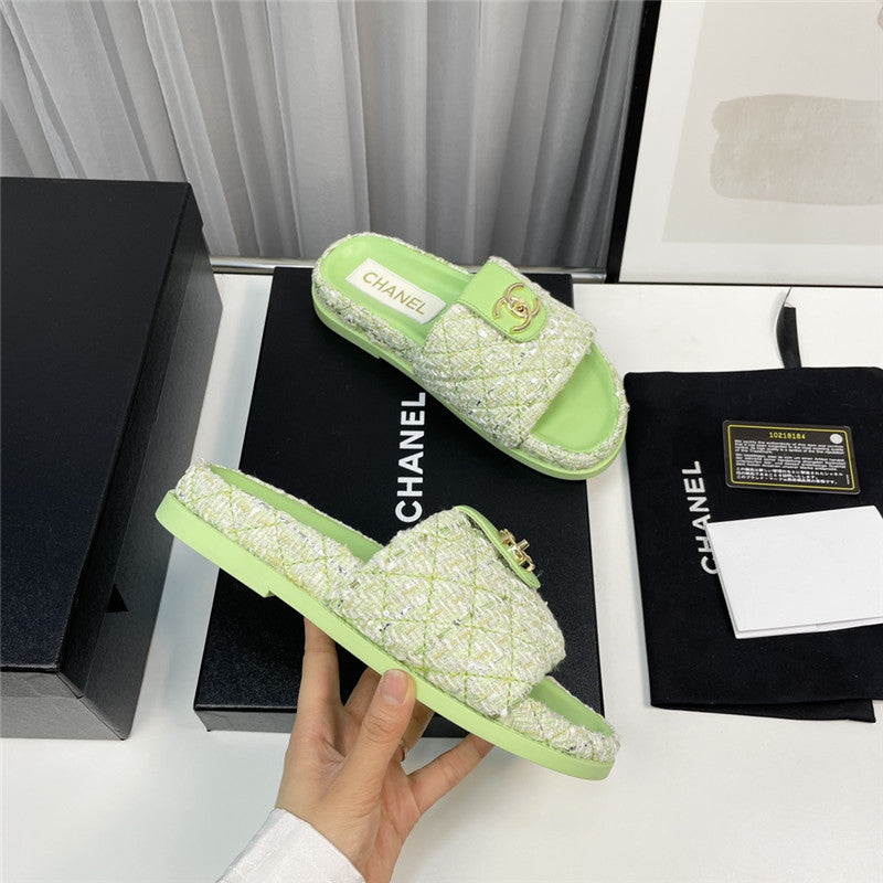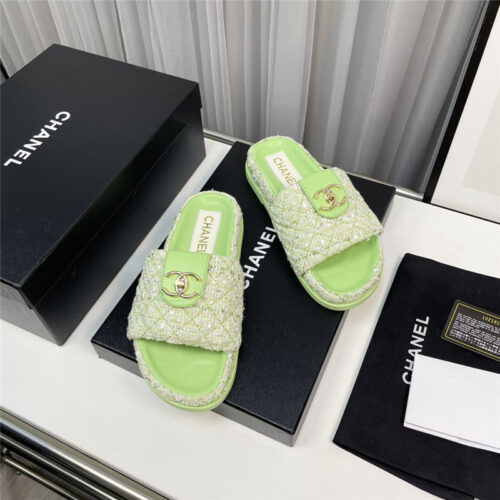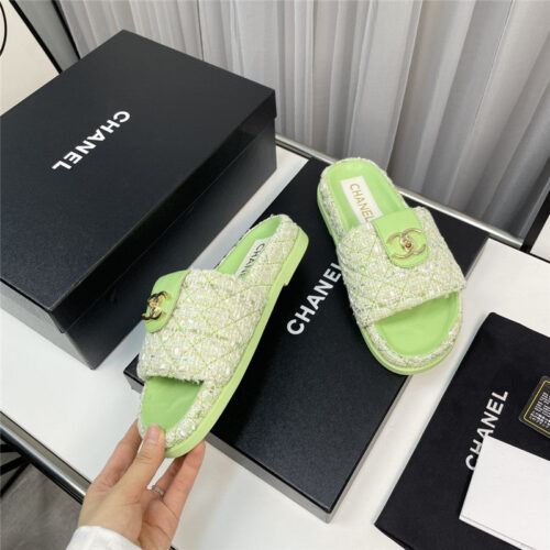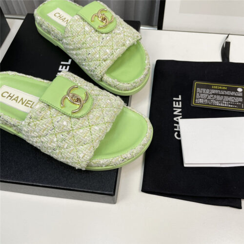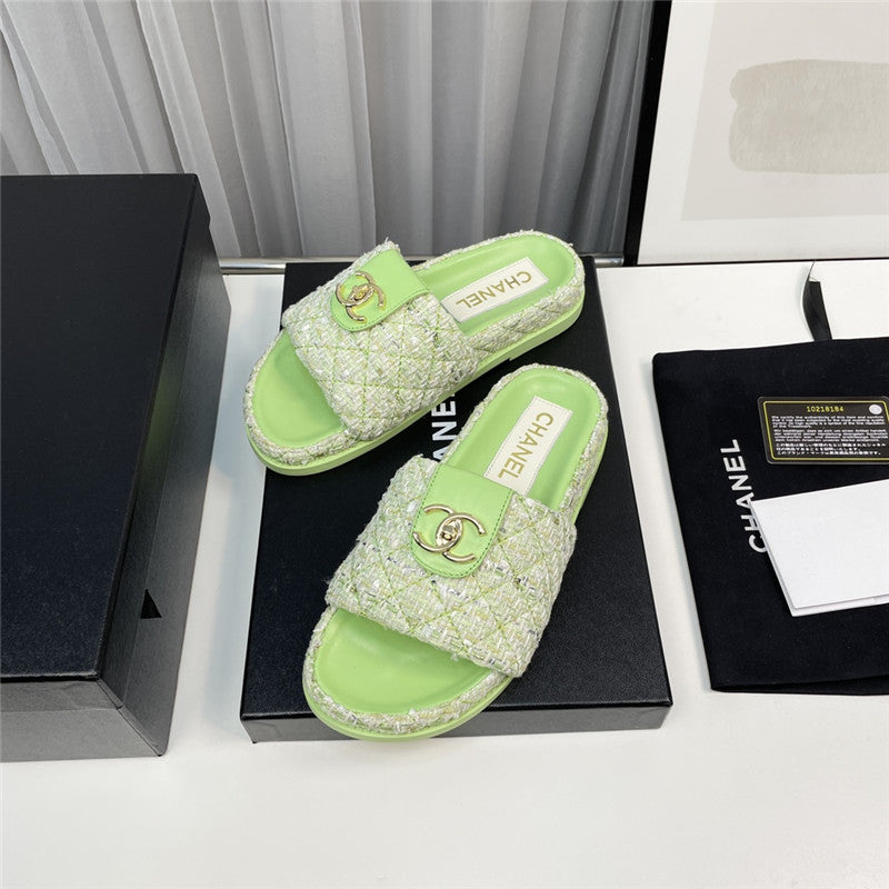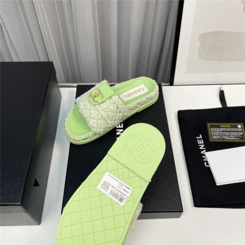 chanel rhombus CC logo platform slippers