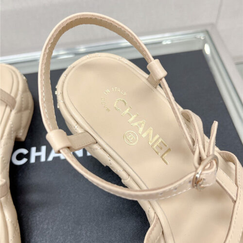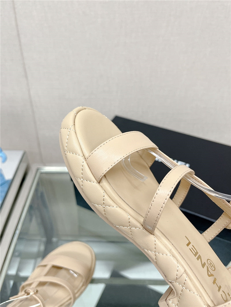 Chanel rhombus platform thick heel sandals with thin straps