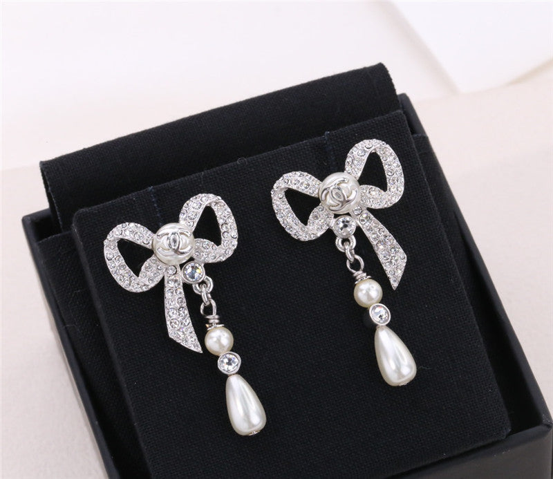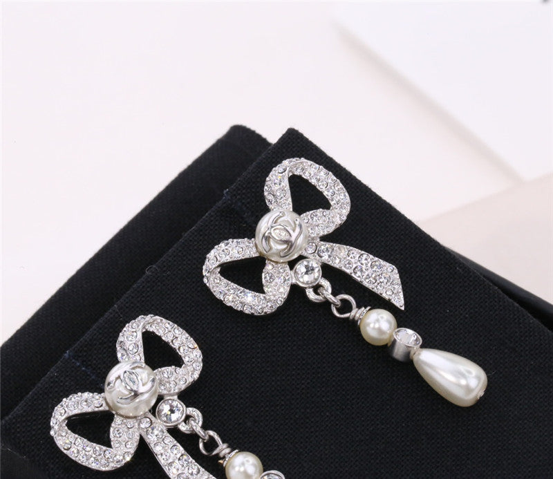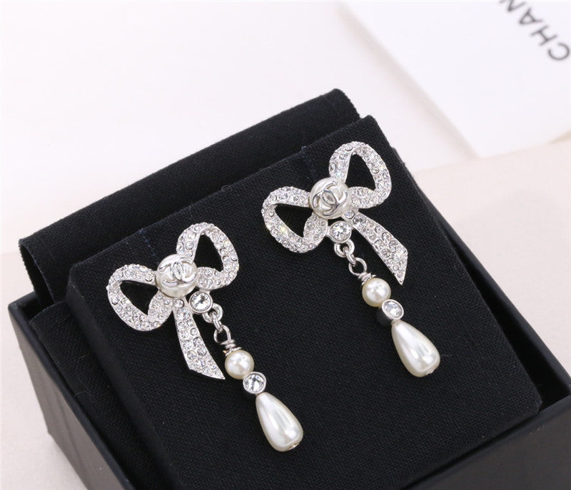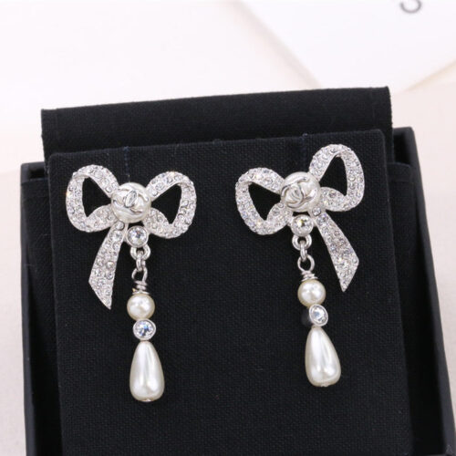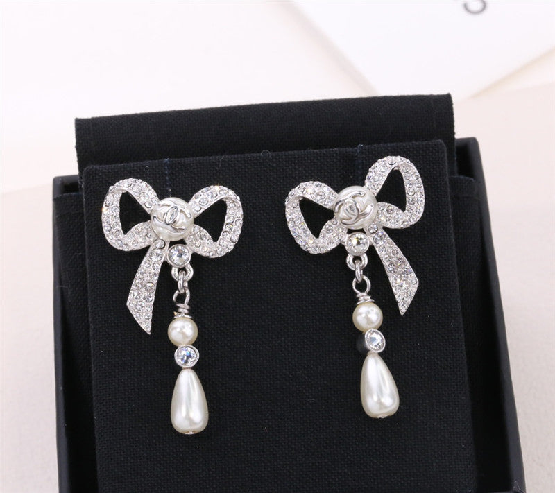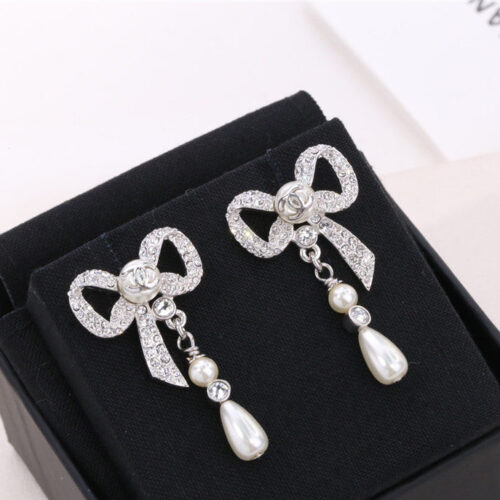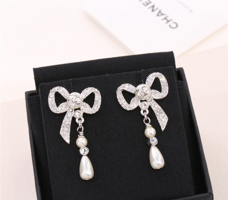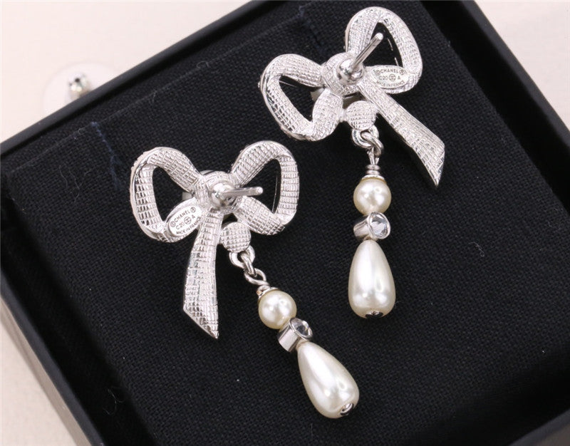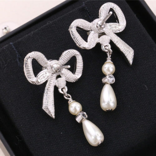 chanel ribbon bow earrings