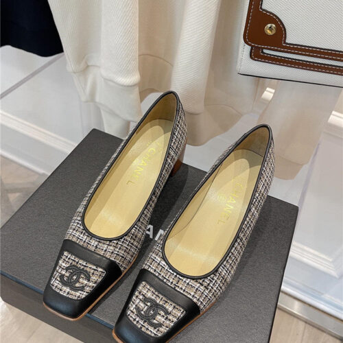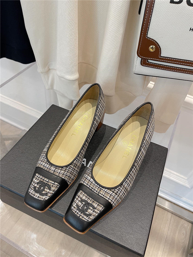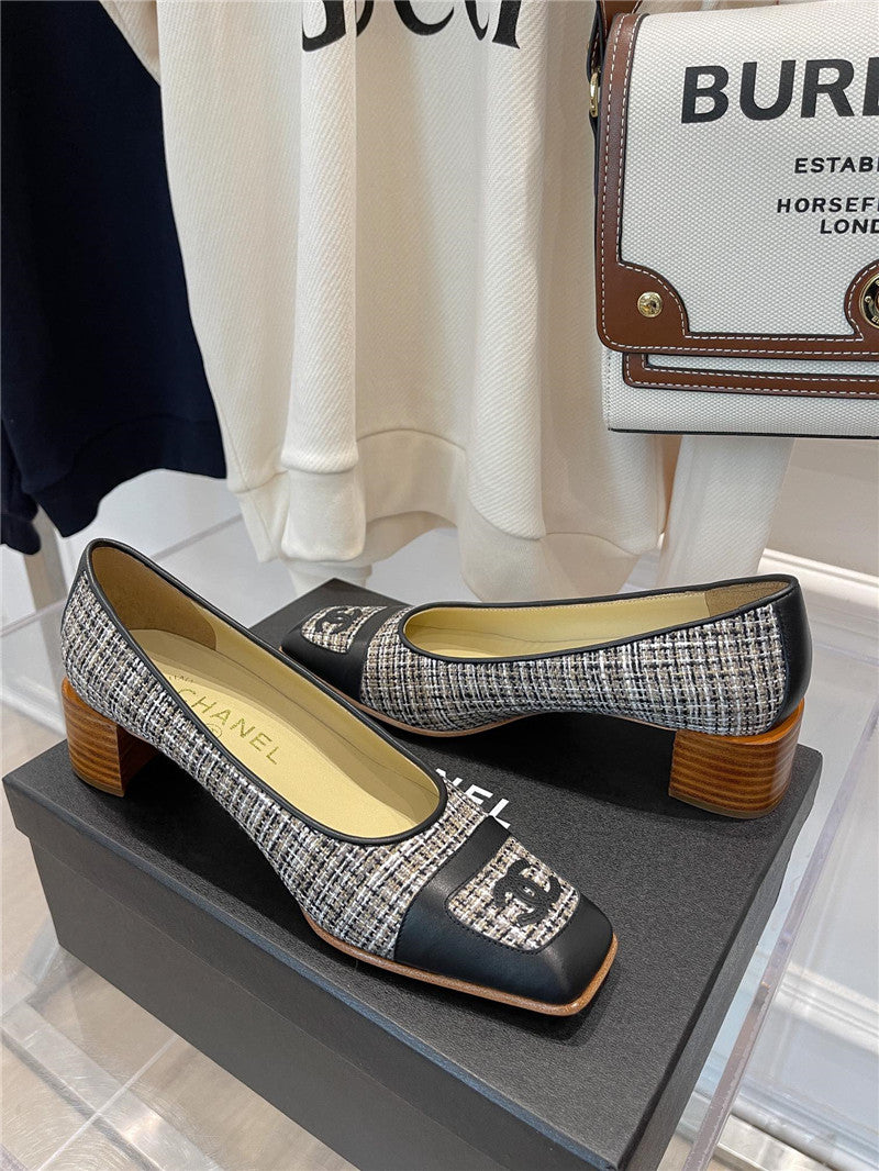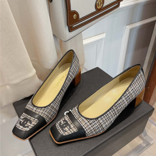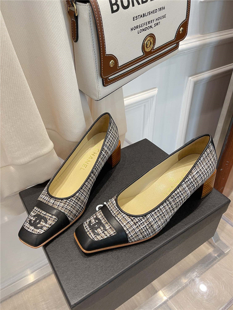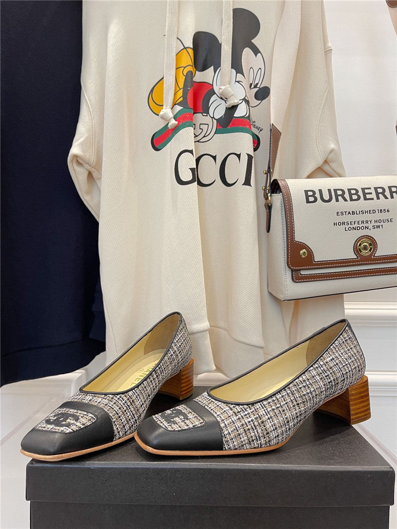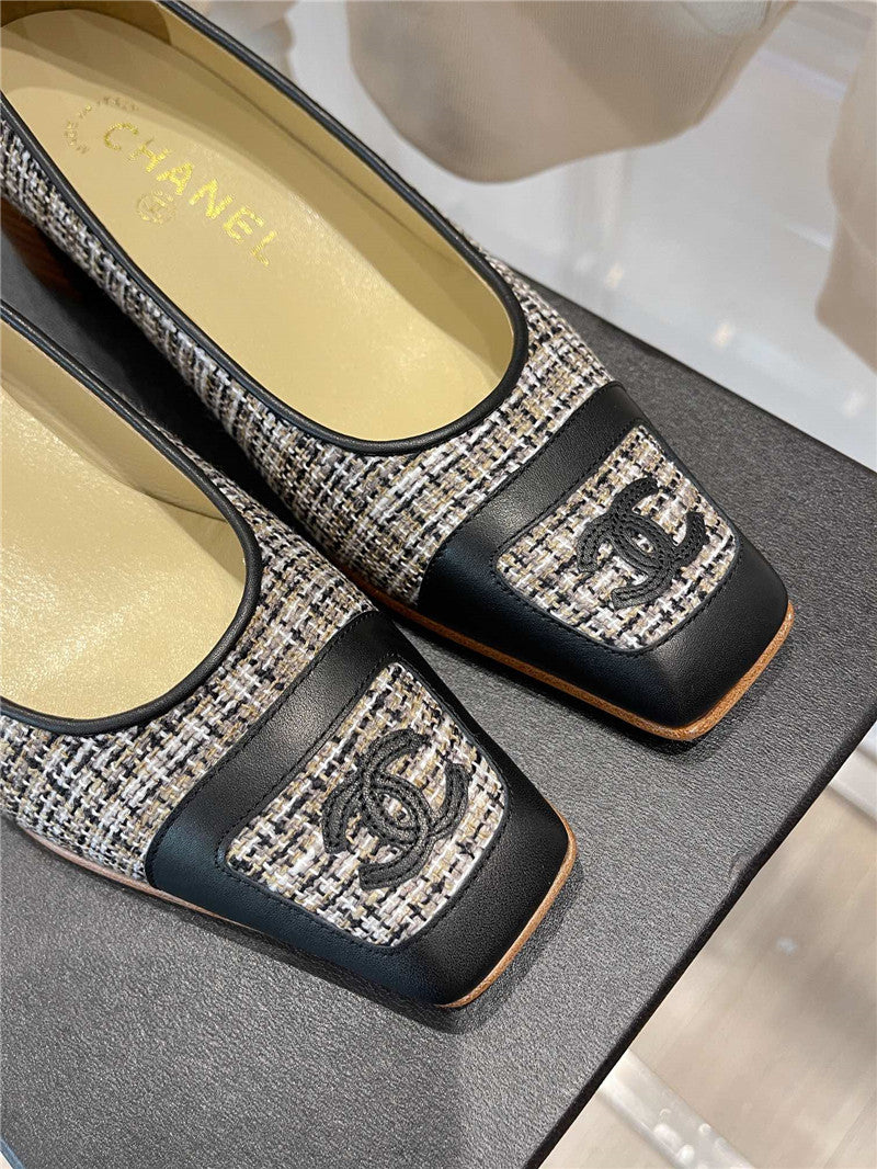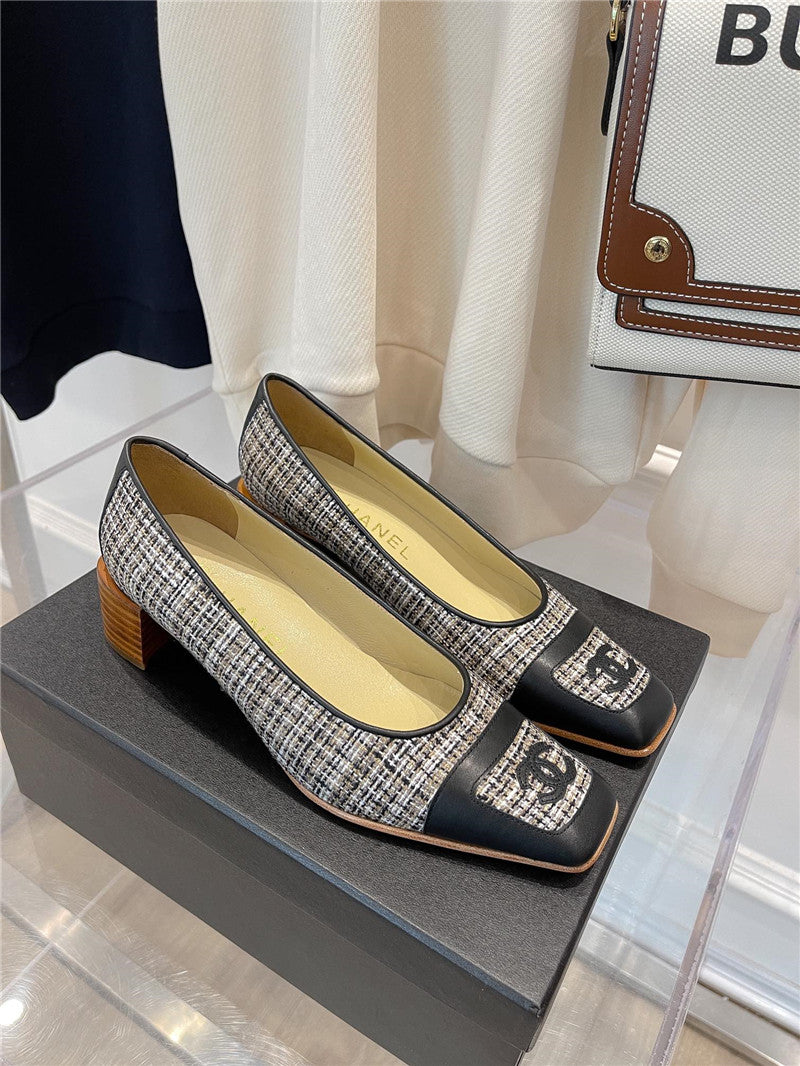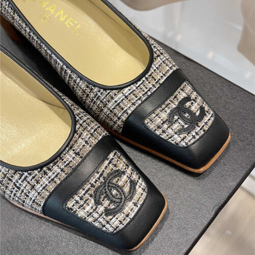 chanel square toe chunky heels