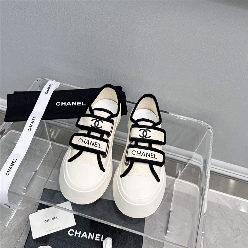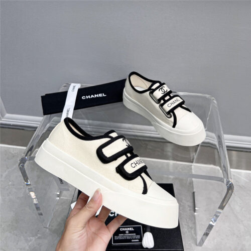 chanel velcro white sneakers