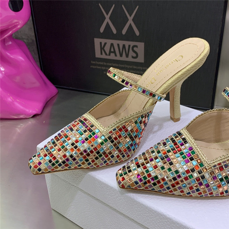 Amina Muaddi Crystal Heels Wine Glass Heel Sandals