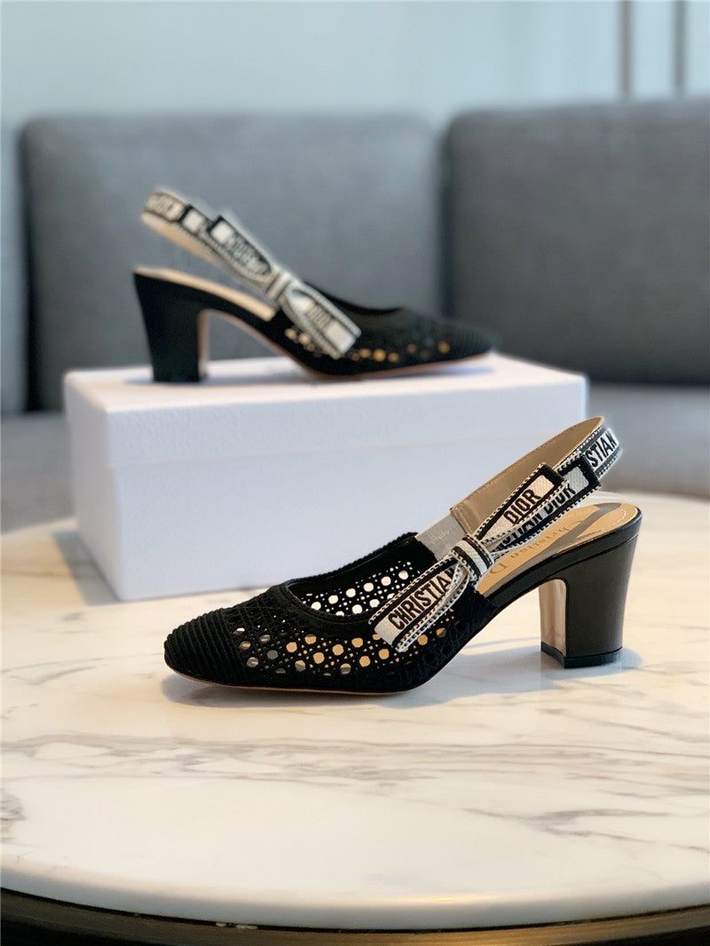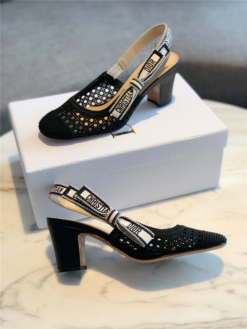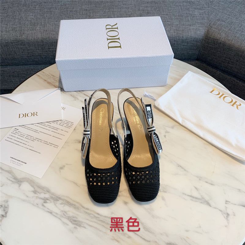 Dior new hollow lace bow high-heeled sandals