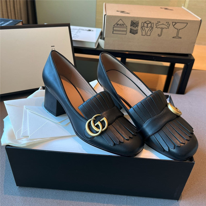 gucci chunky heel tassel shoes