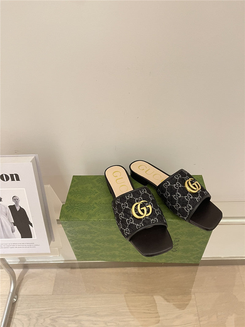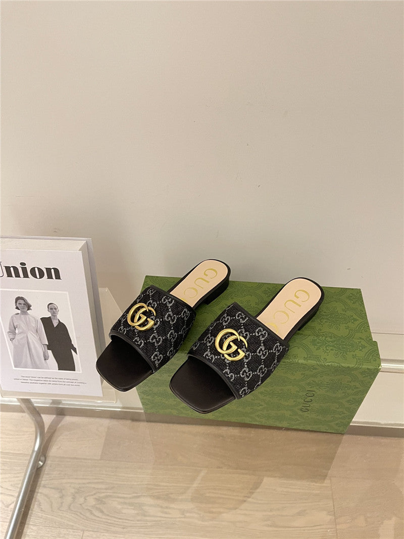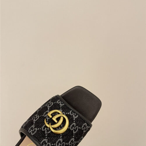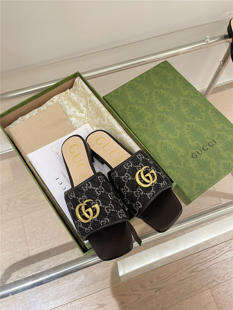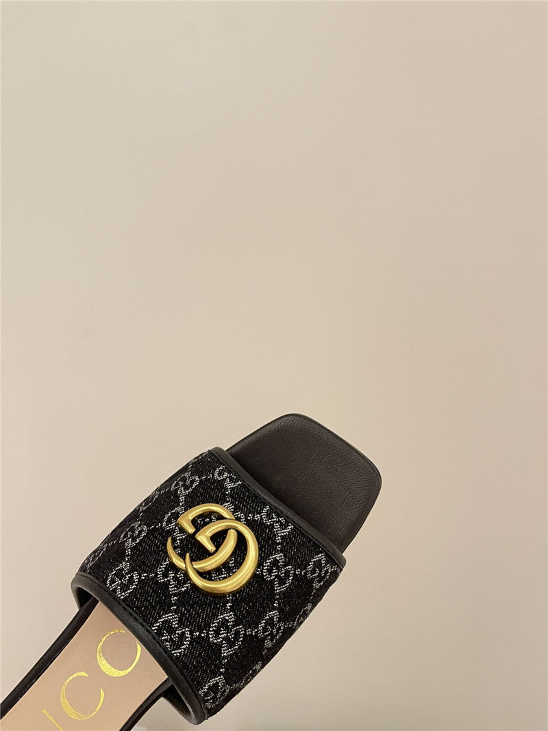 gucci denim pattern embroidery slippers