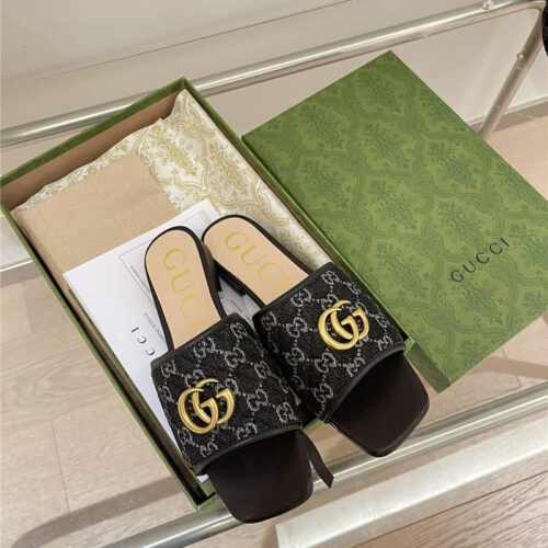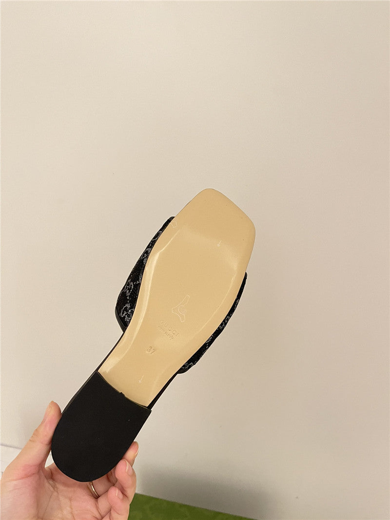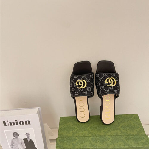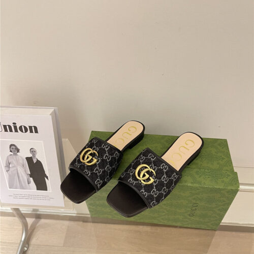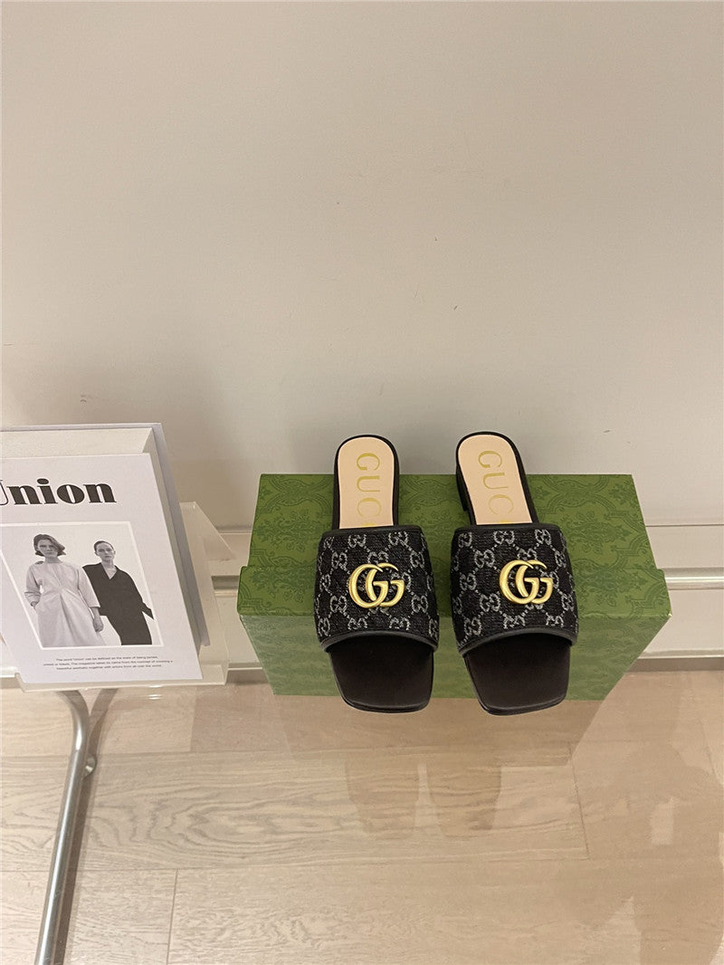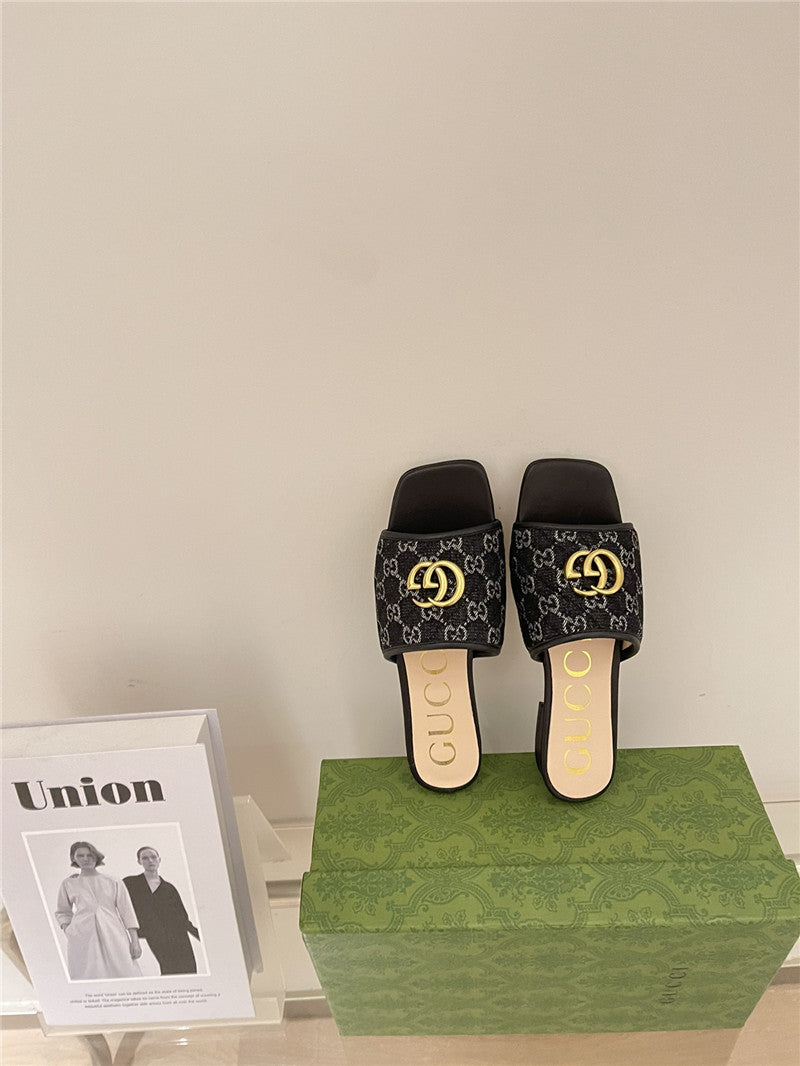 gucci denim pattern embroidery slippers