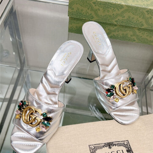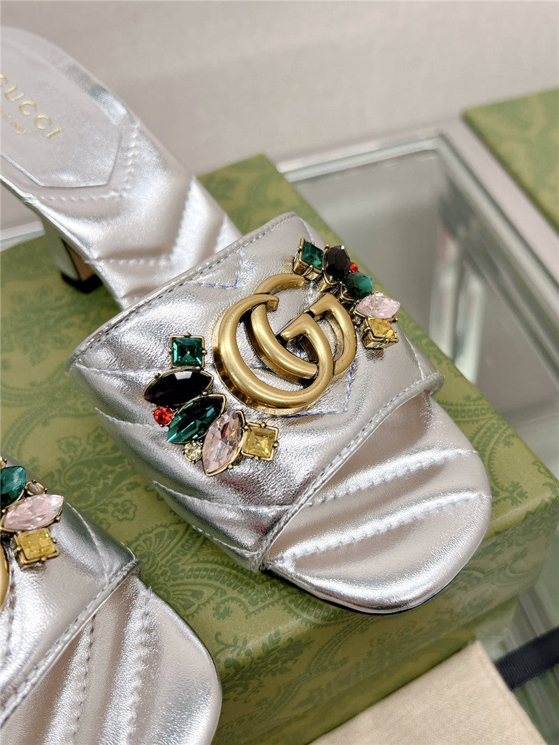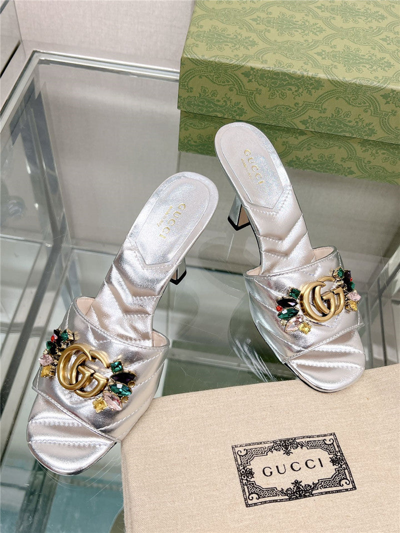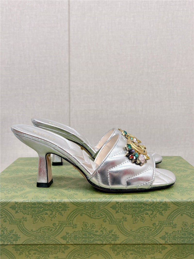 Amina Muaddi Floral Crystal Pumps Wineglass Heel Sandals