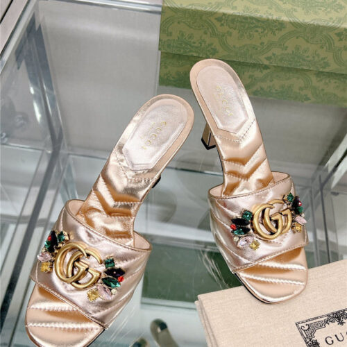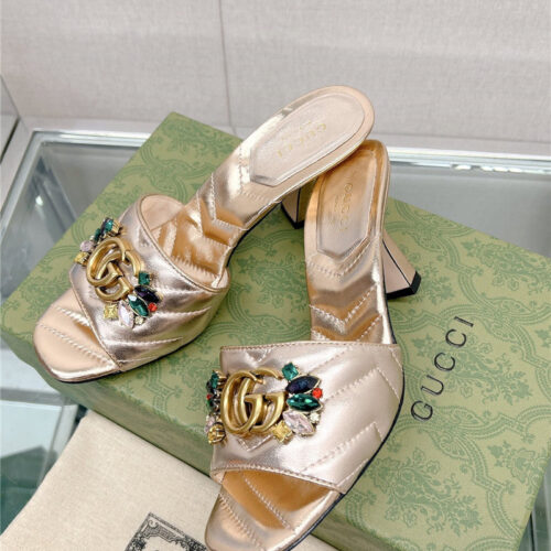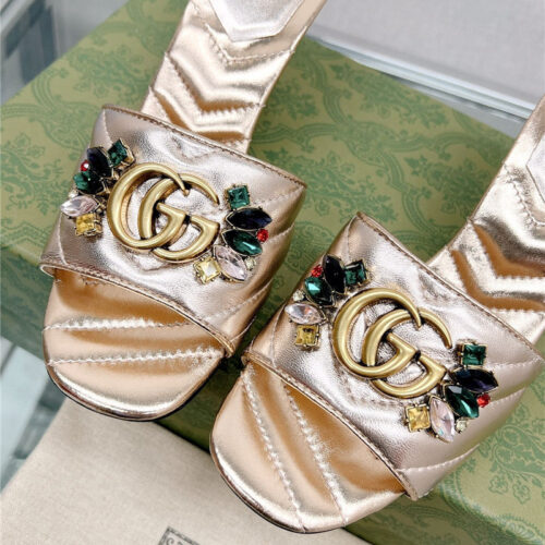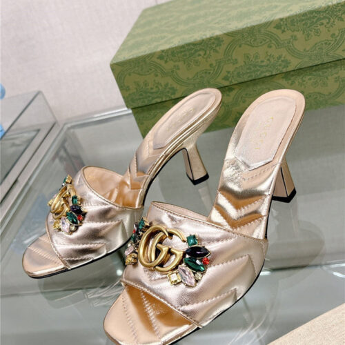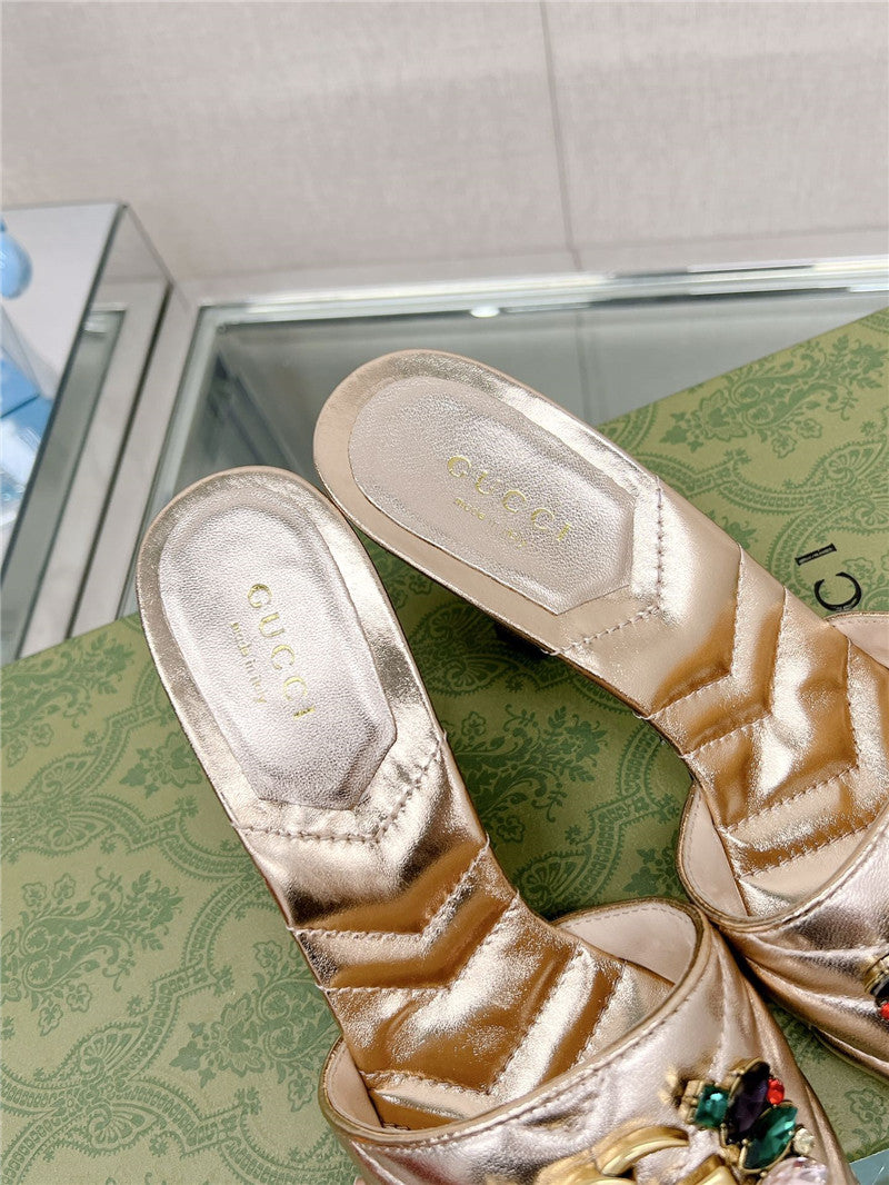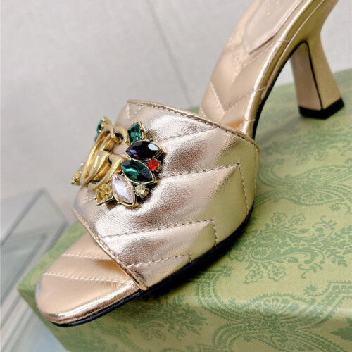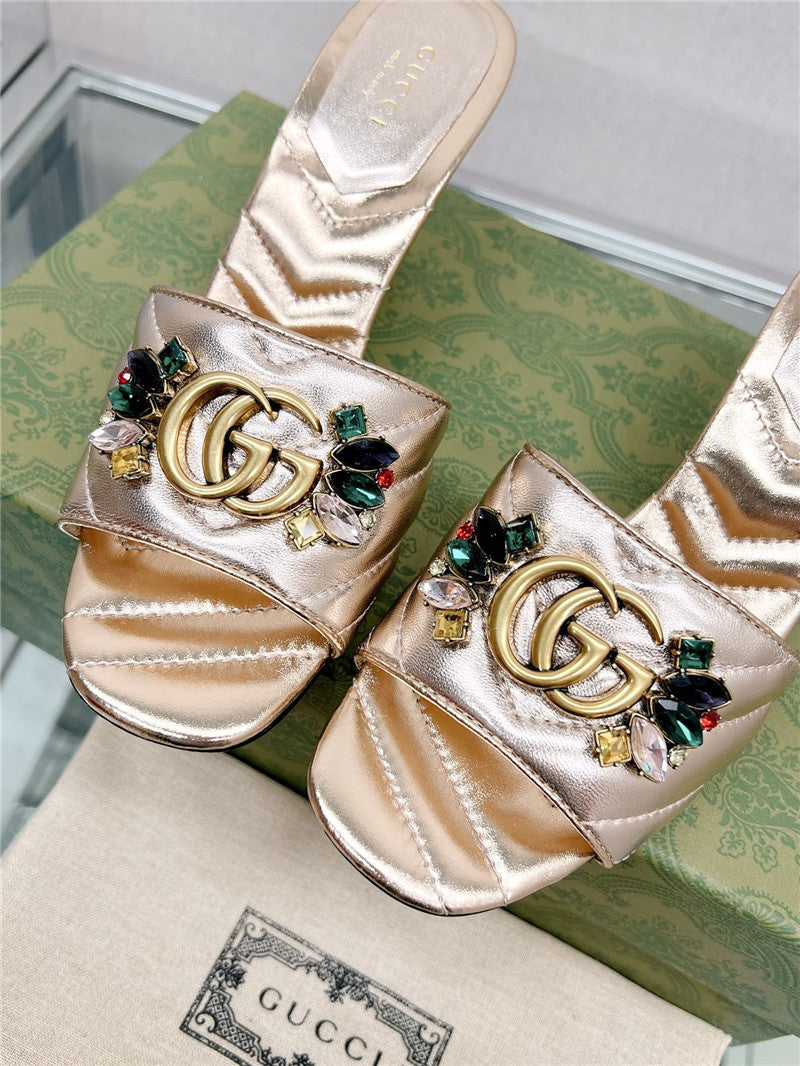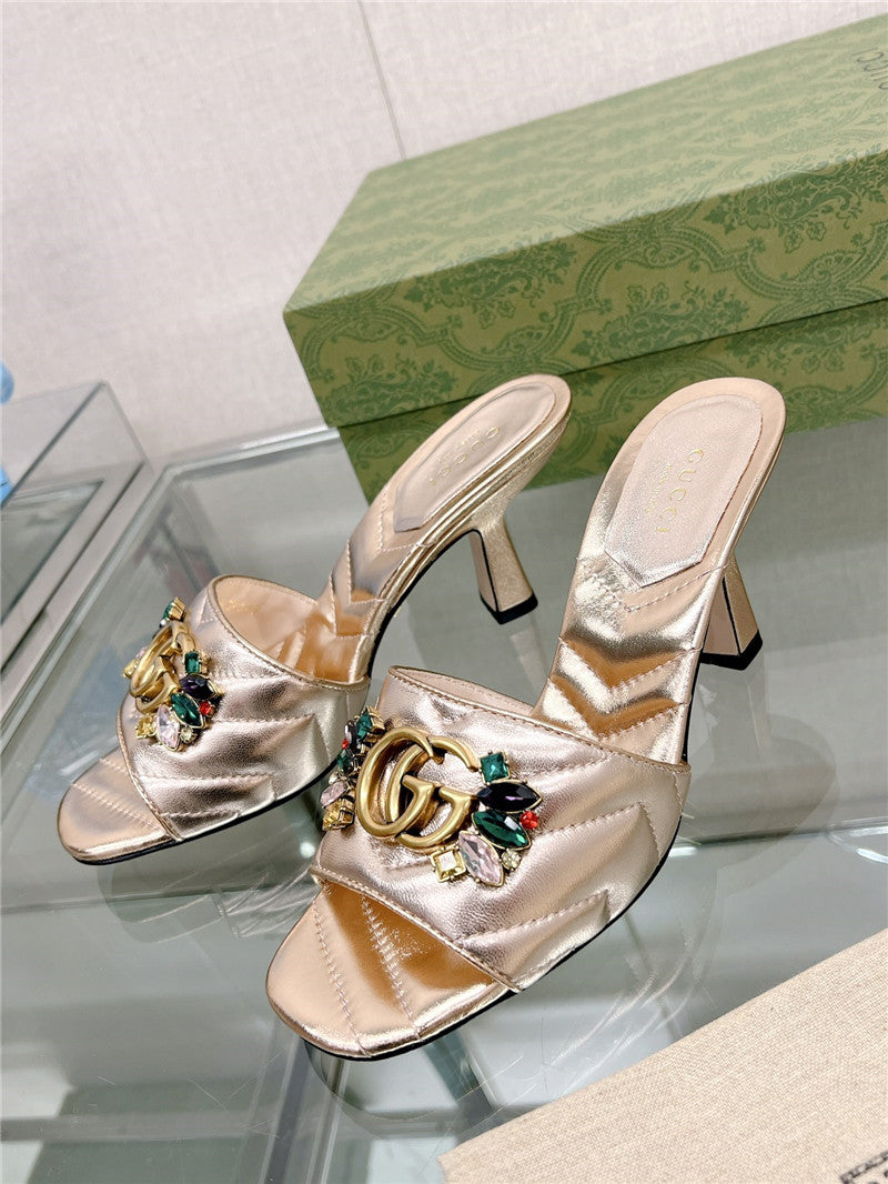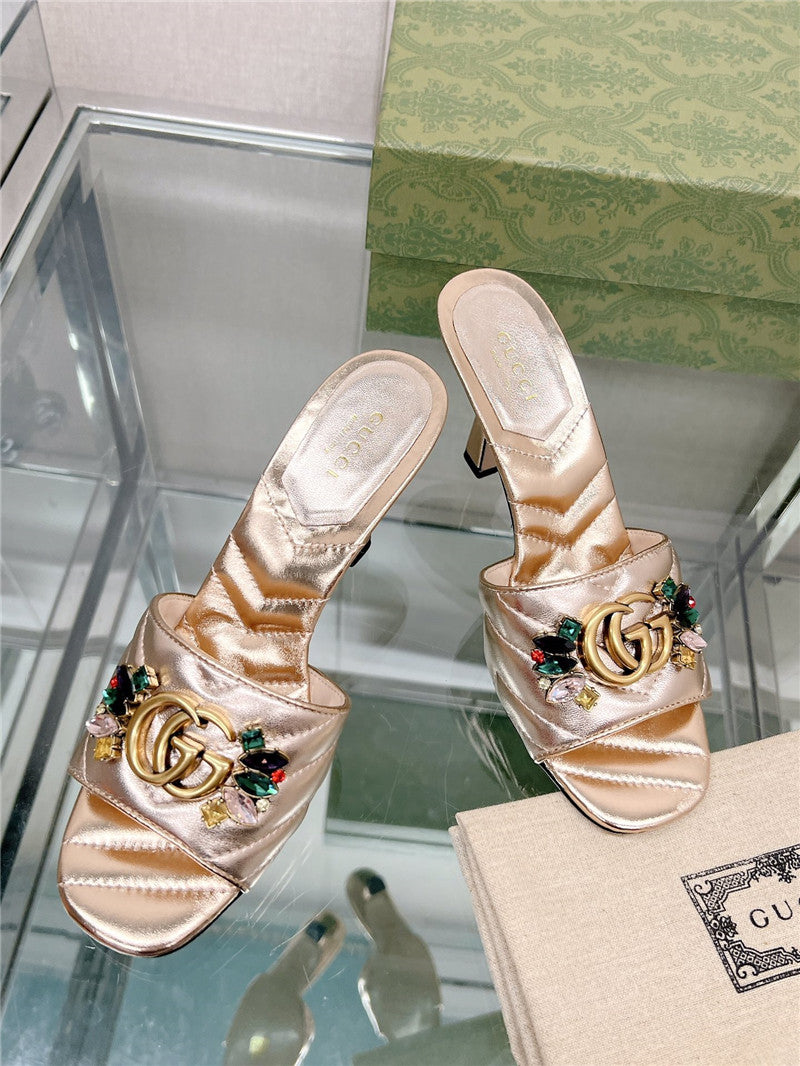 • gucci double G colored diamond buckle high-heeled slippers