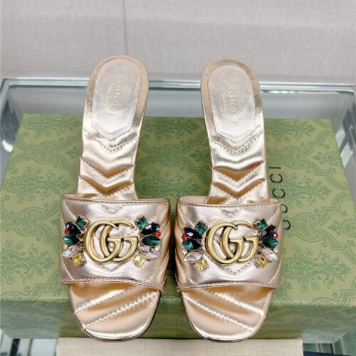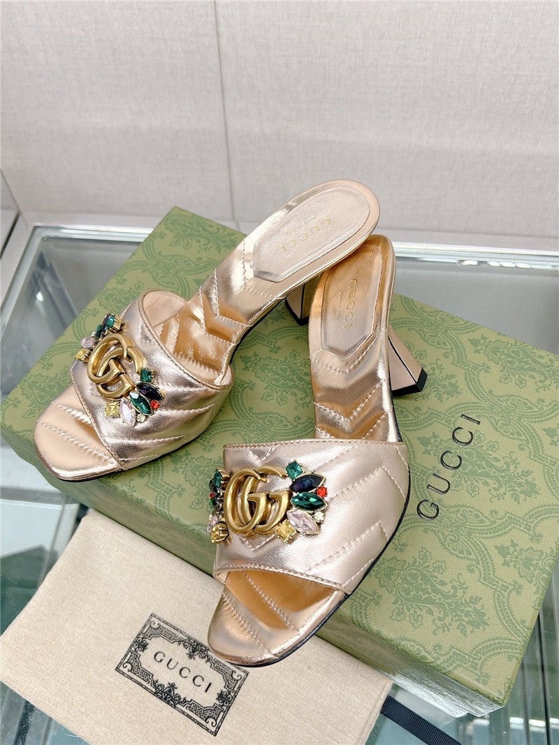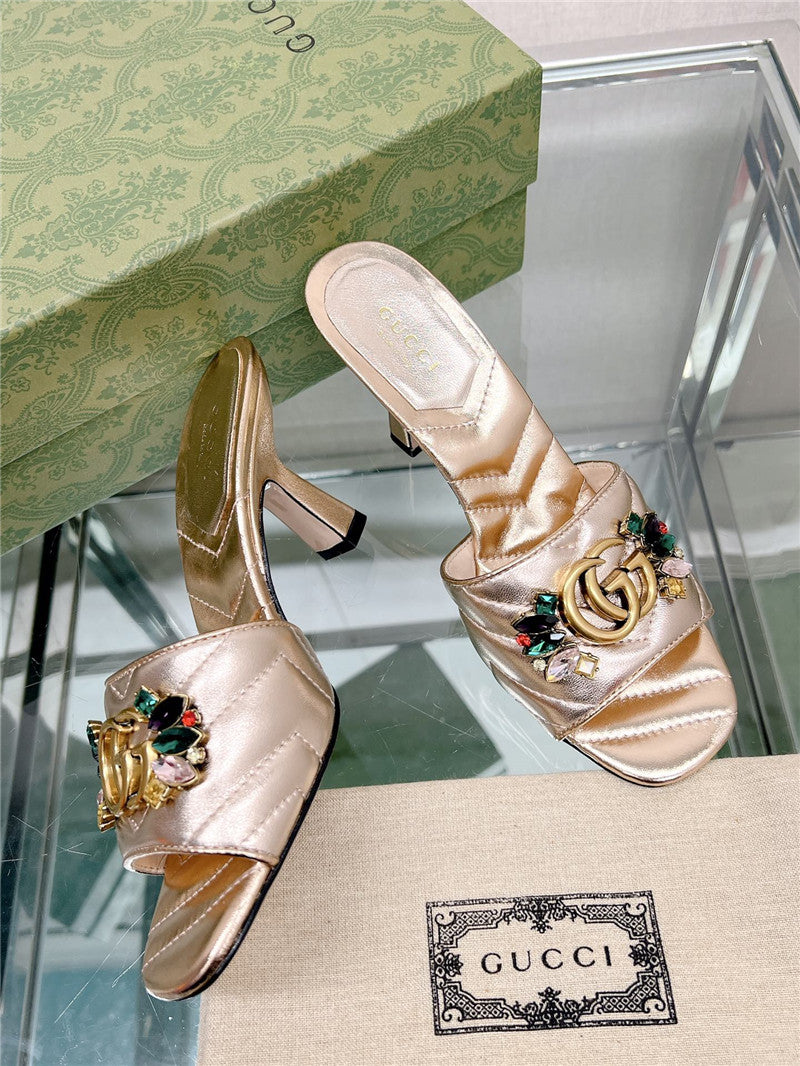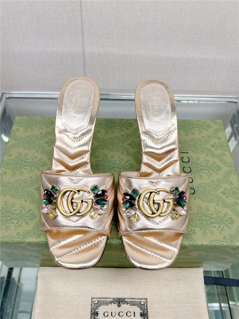 gucci double G colored diamond buckle high-heeled slippers