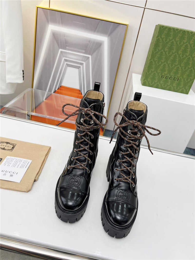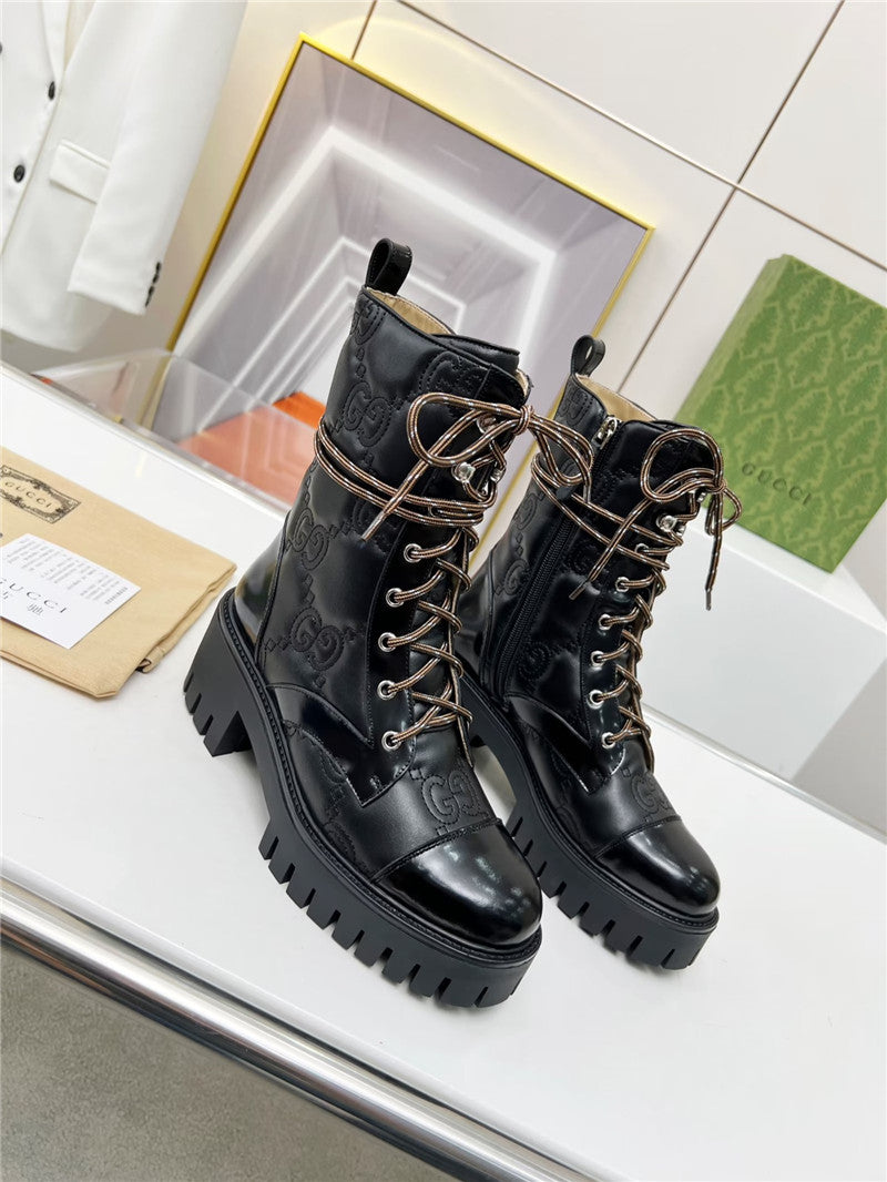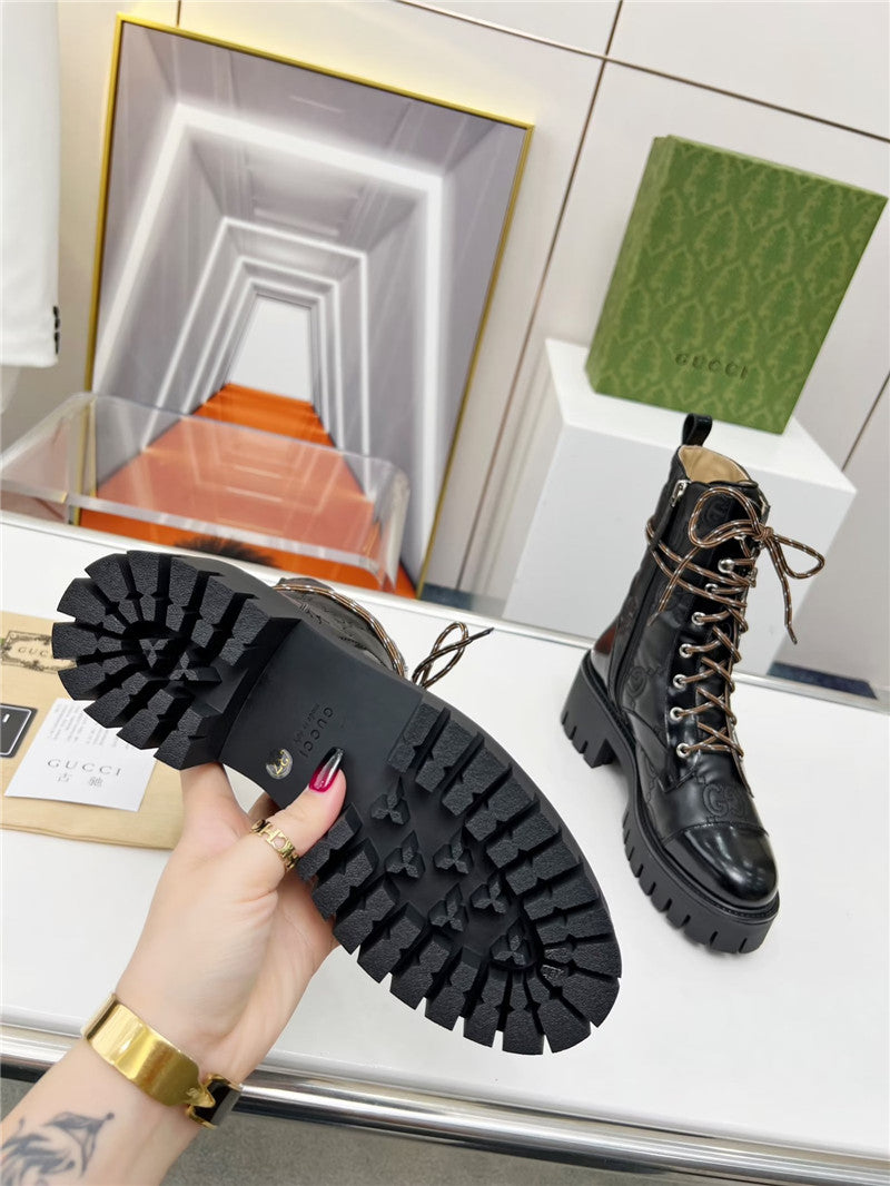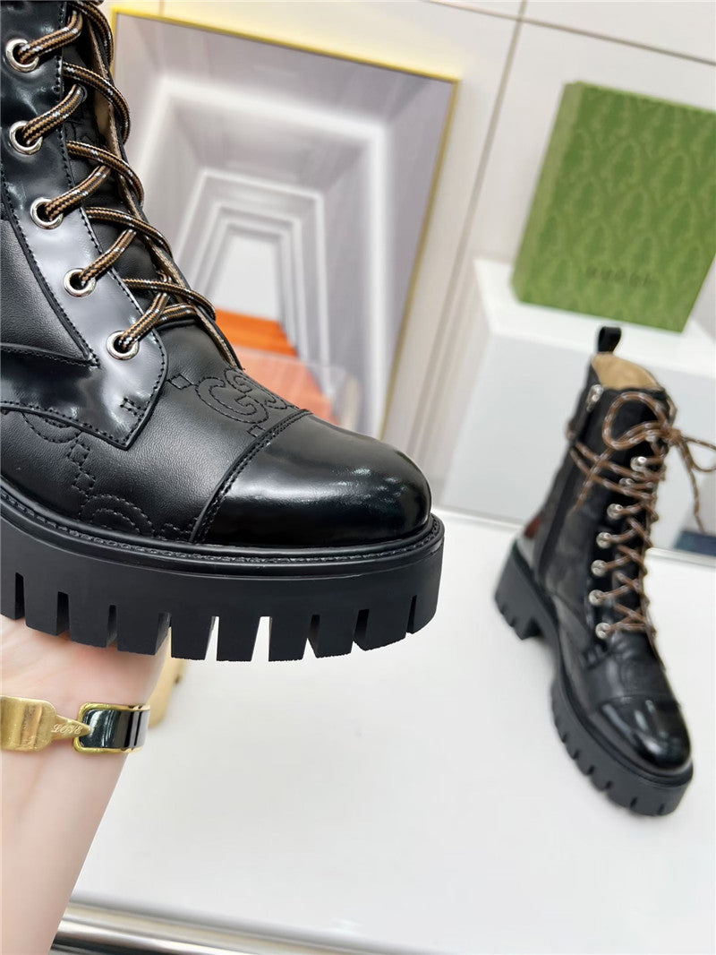 • gucci double G electric embroidery version lace-up 8 inch boots