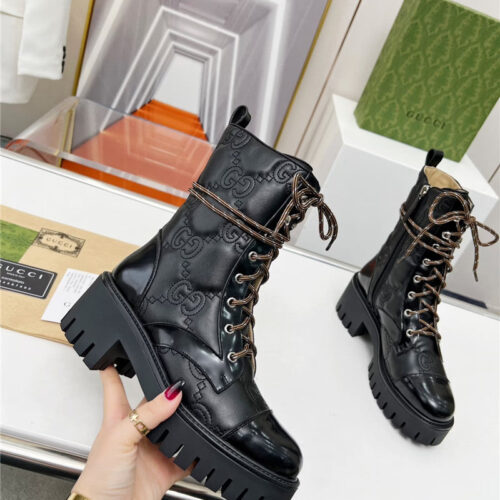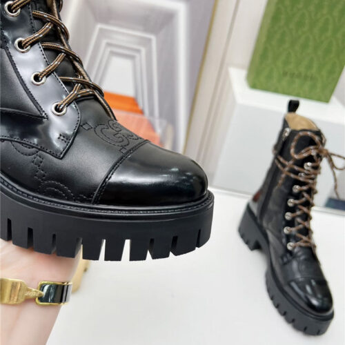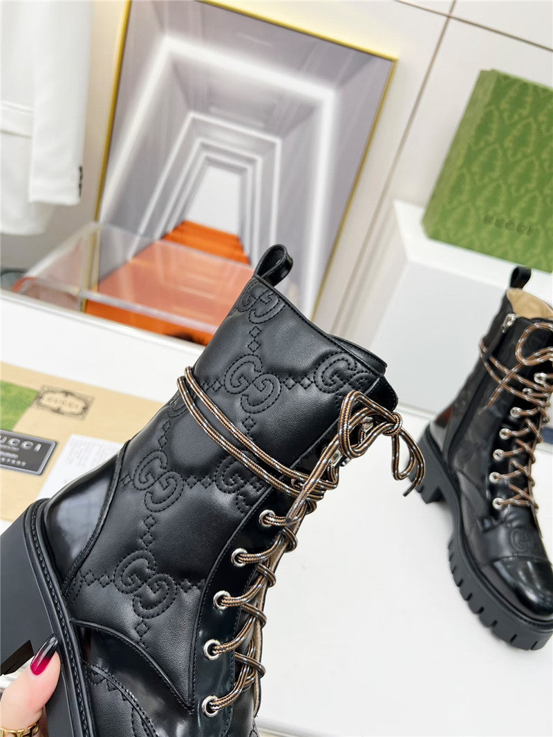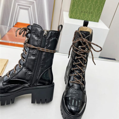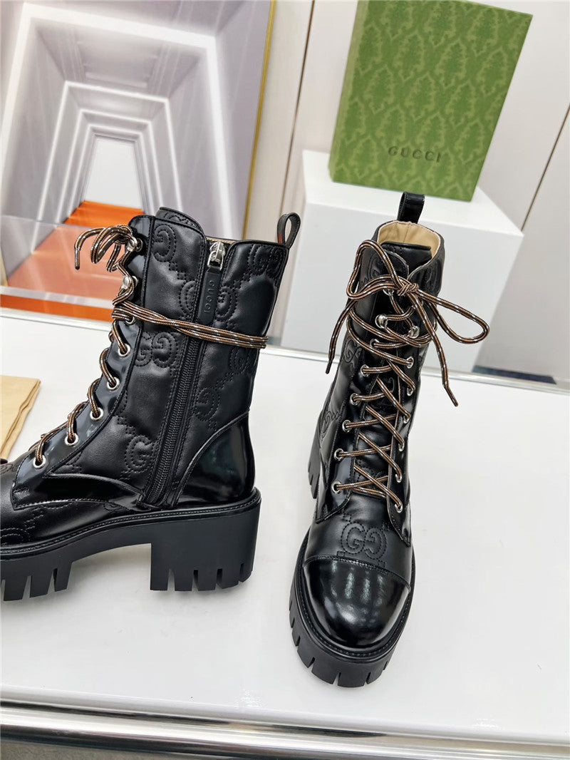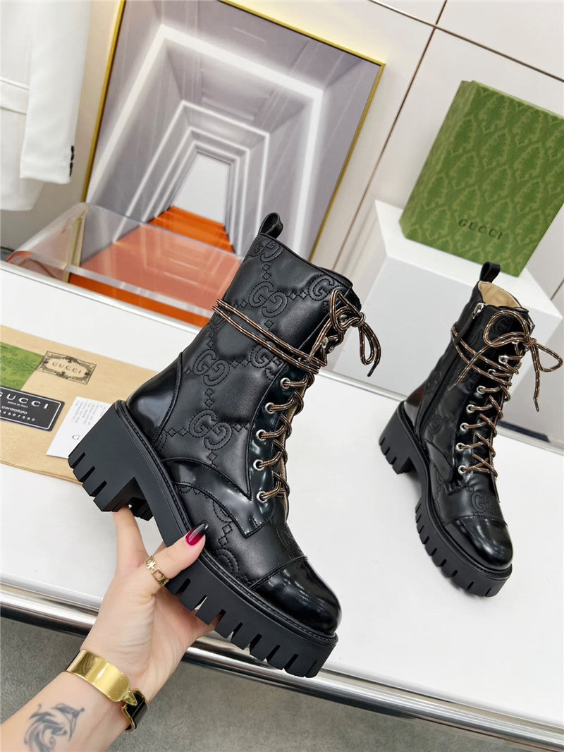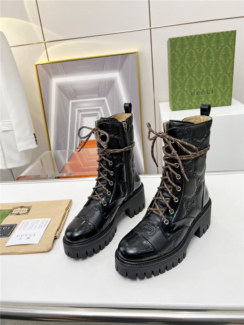 • gucci double G electric embroidery version lace-up 8 inch boots