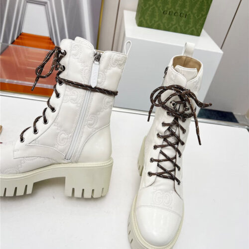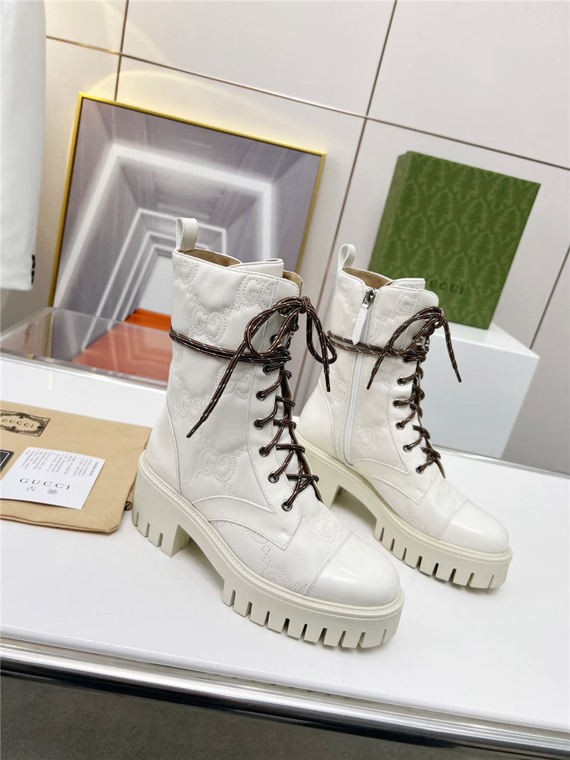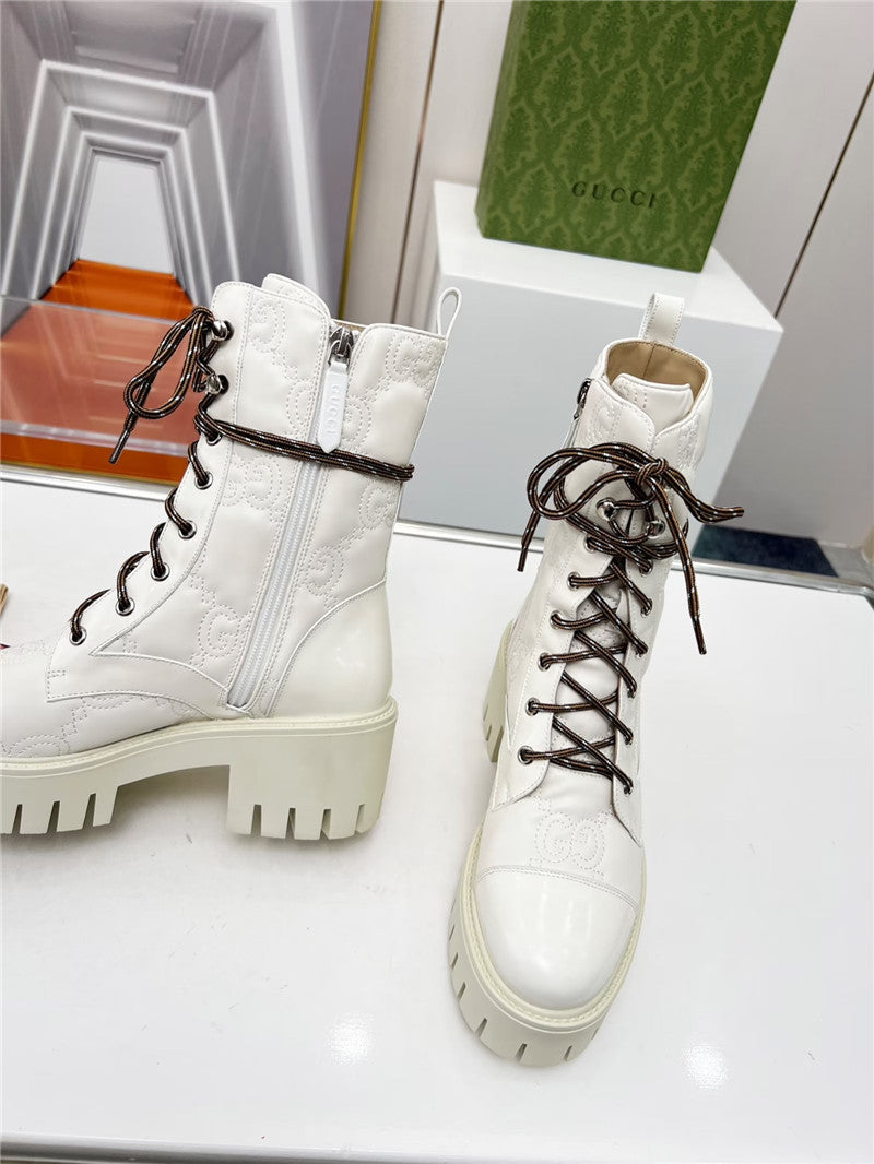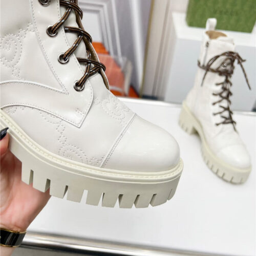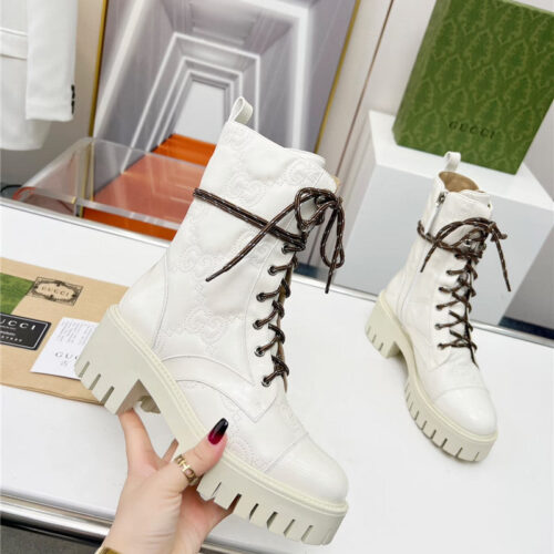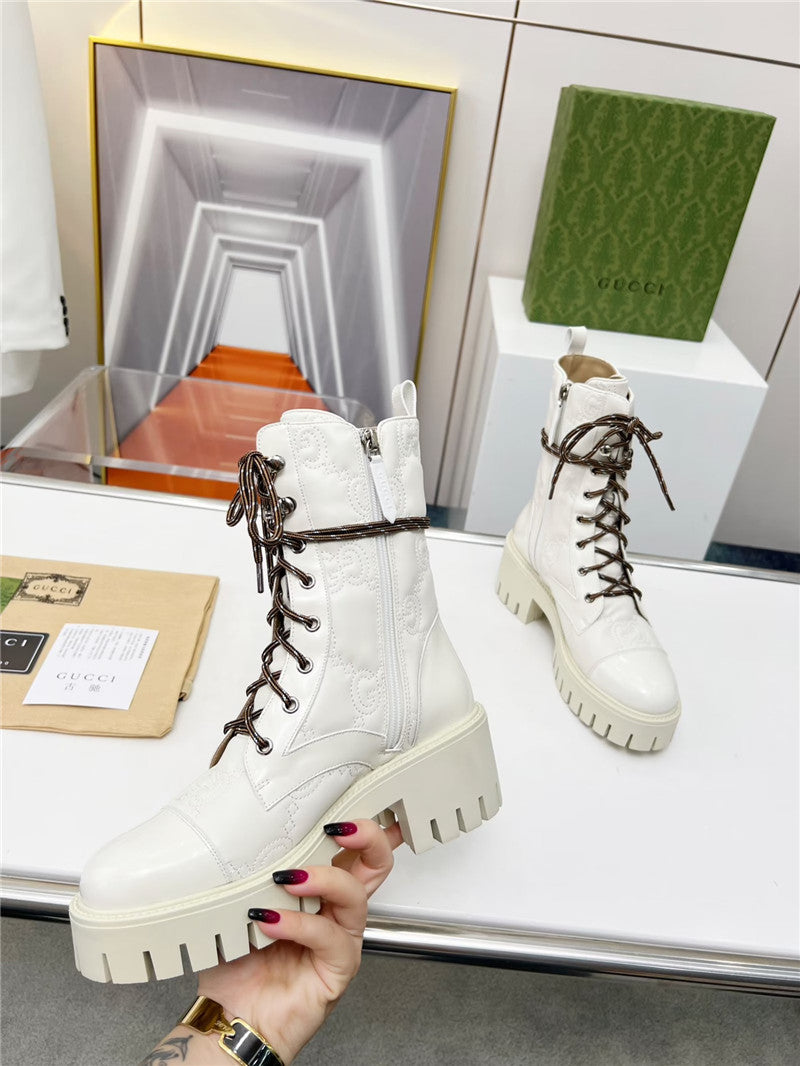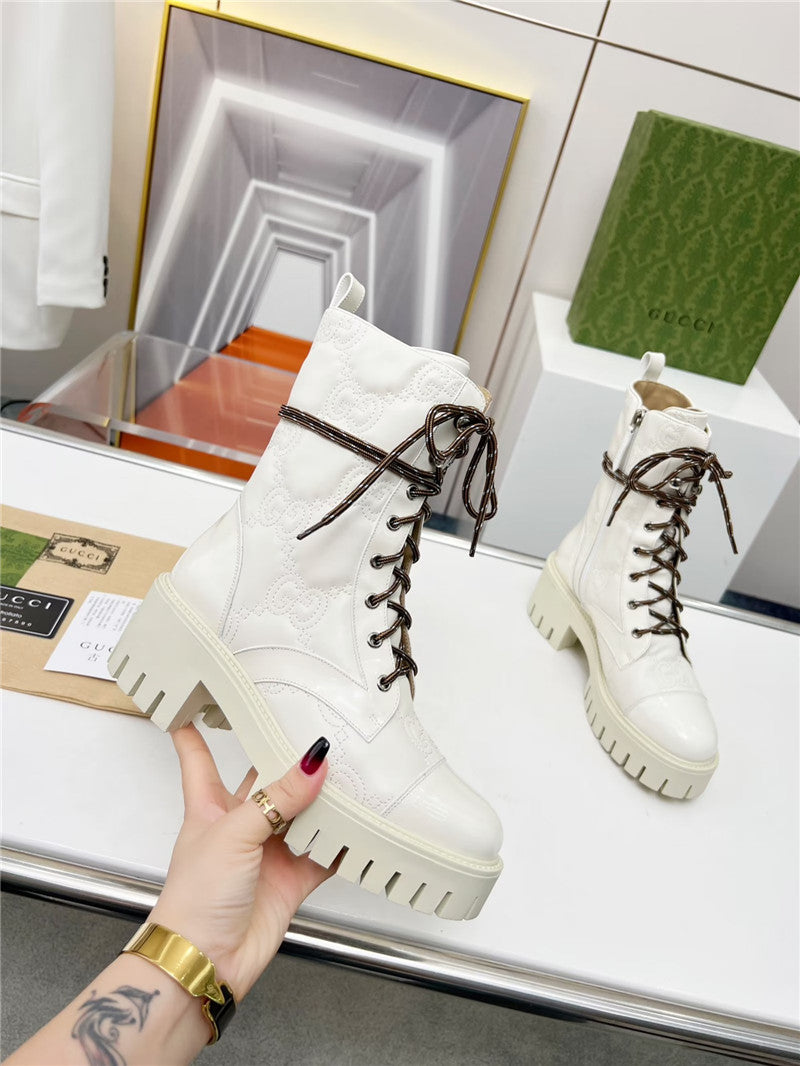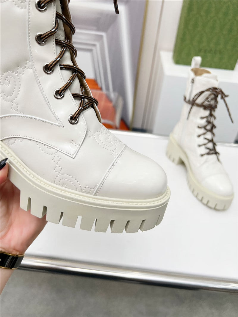 • gucci double G electric embroidery version lace-up 8 inch boots