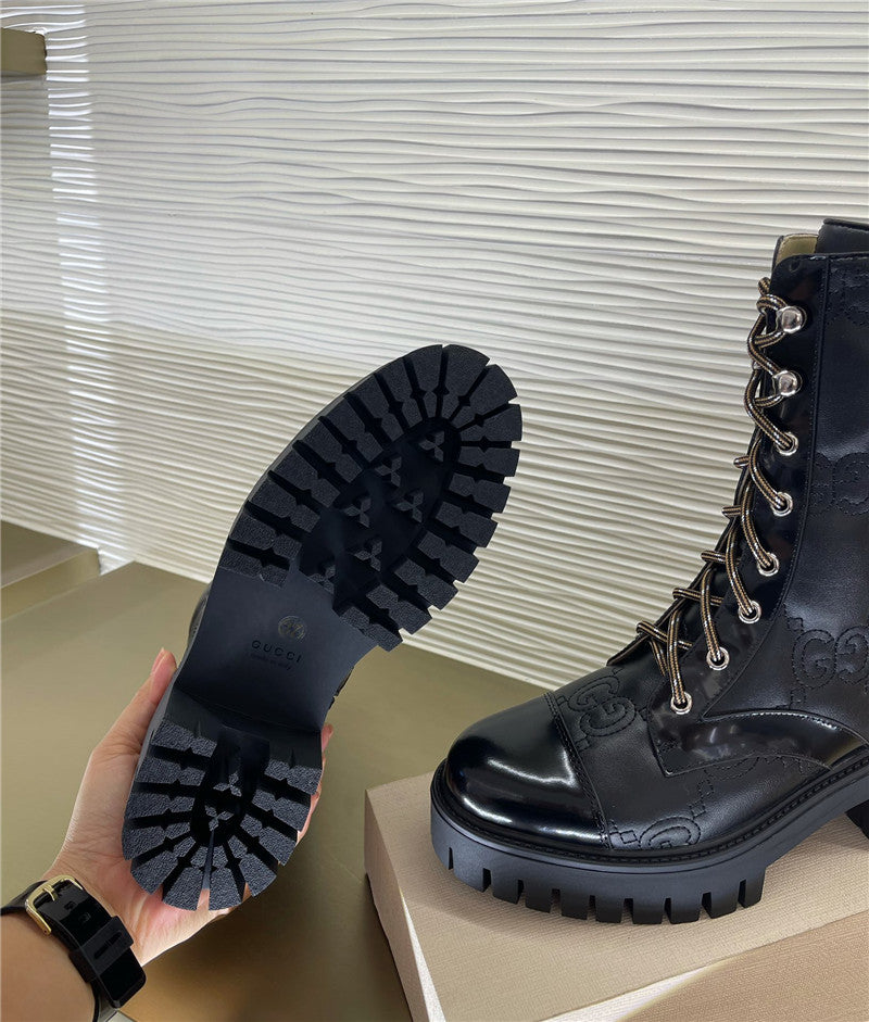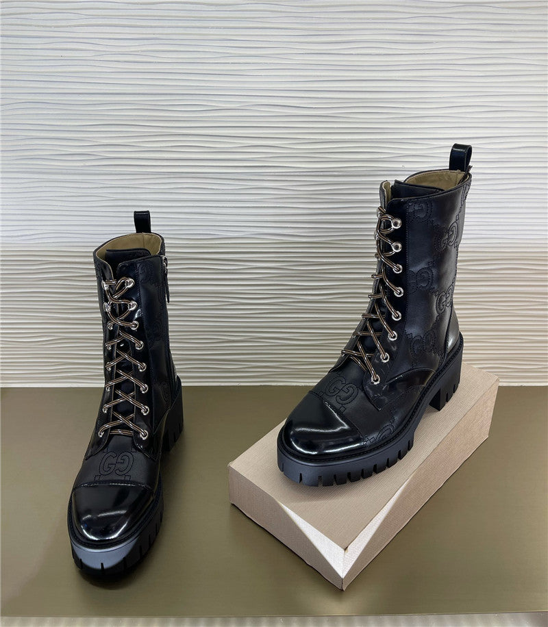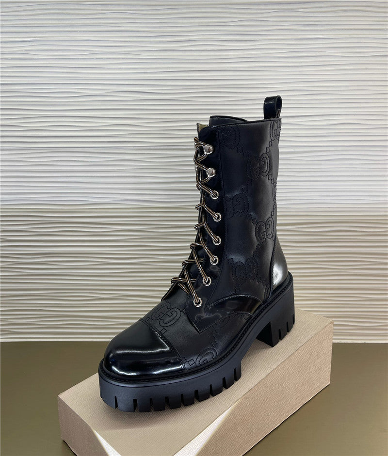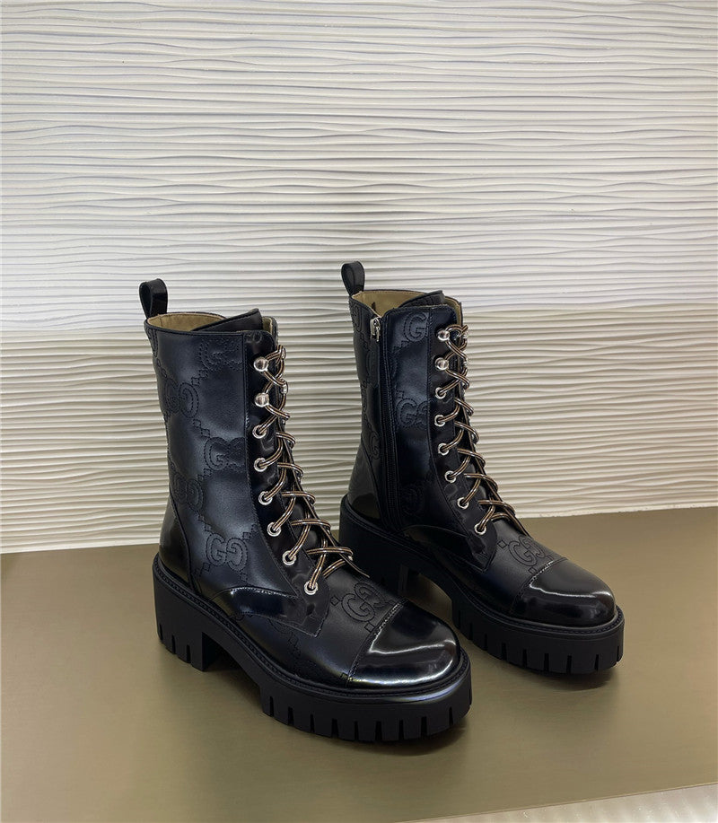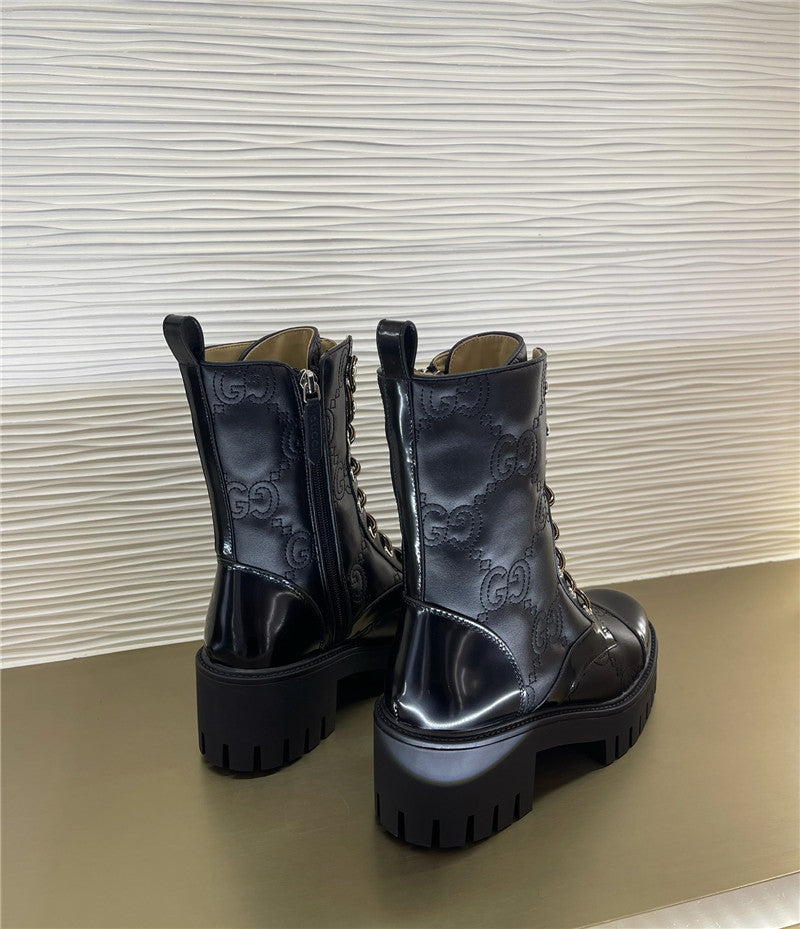 ? ?. gucci double G embroidered logo retro motorcycle boots