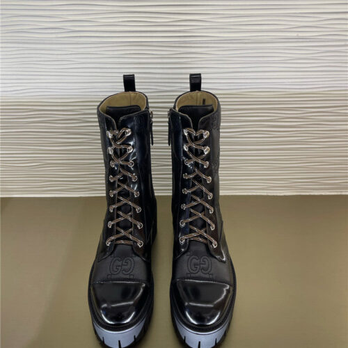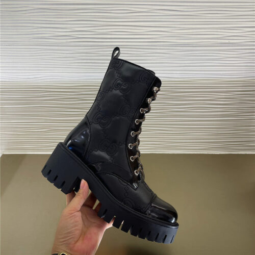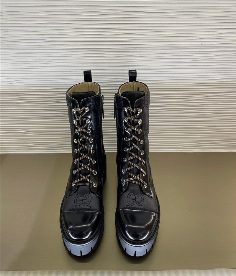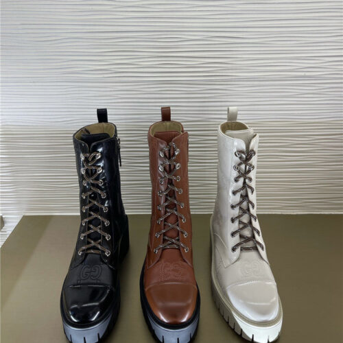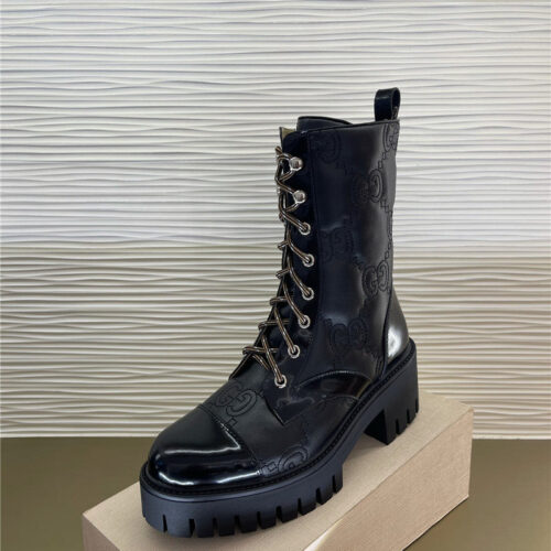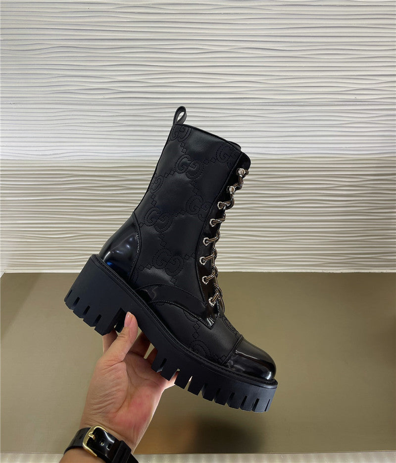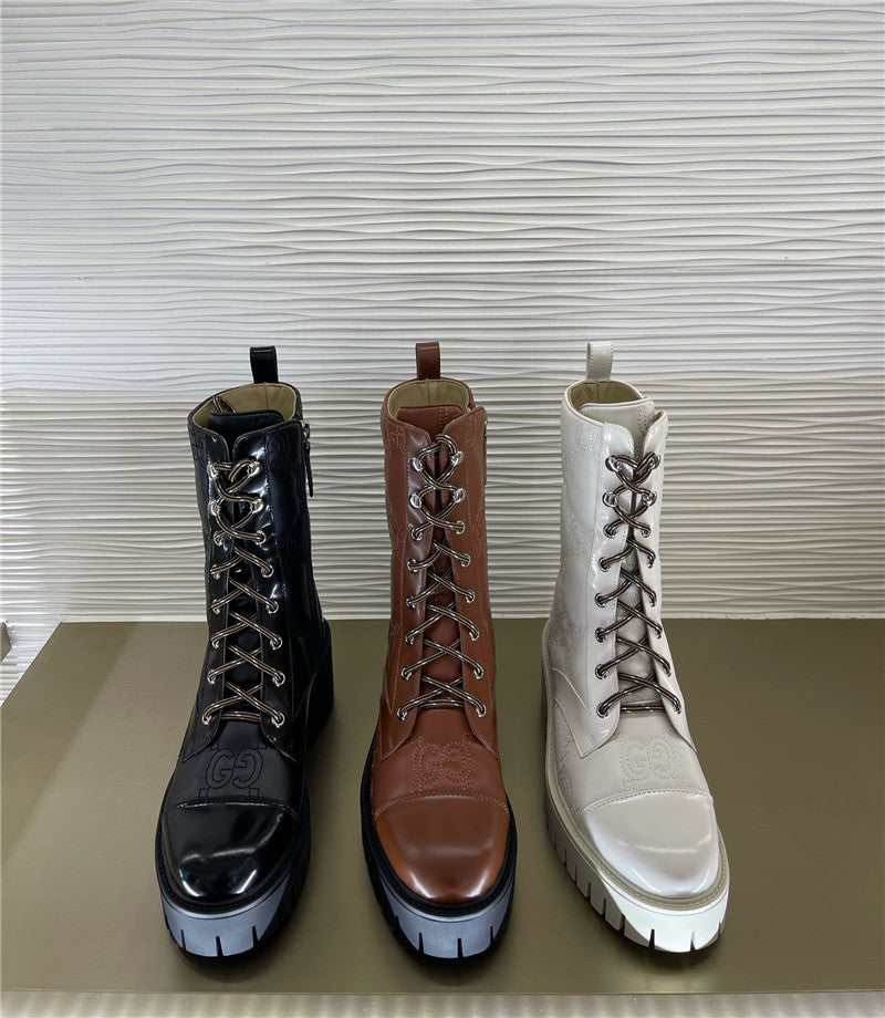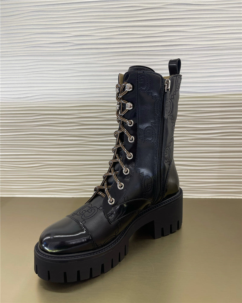 ? ?. gucci double G embroidered logo retro motorcycle boots