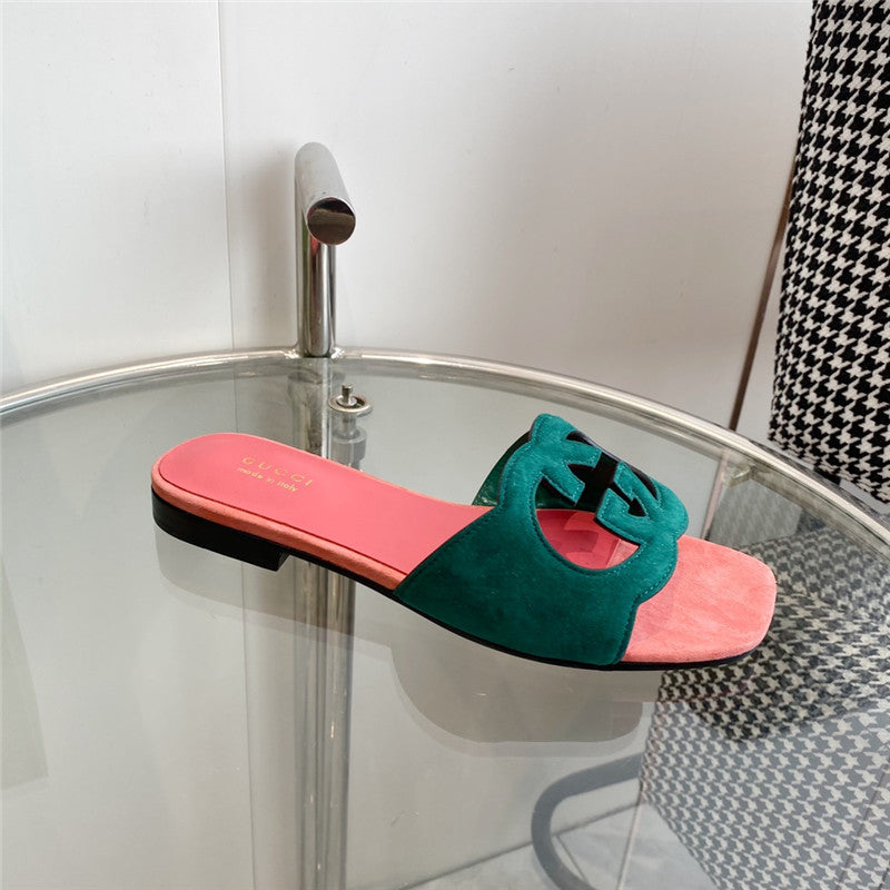 • gucci double G colored diamond buckle high-heeled slippers $319.00