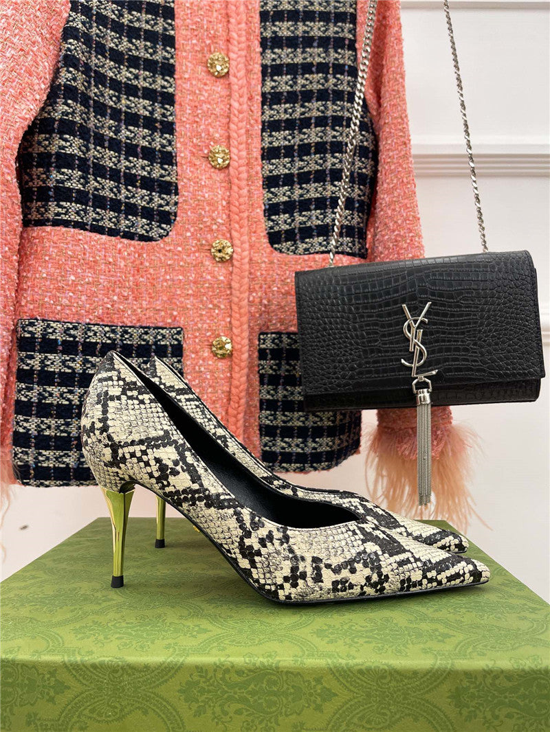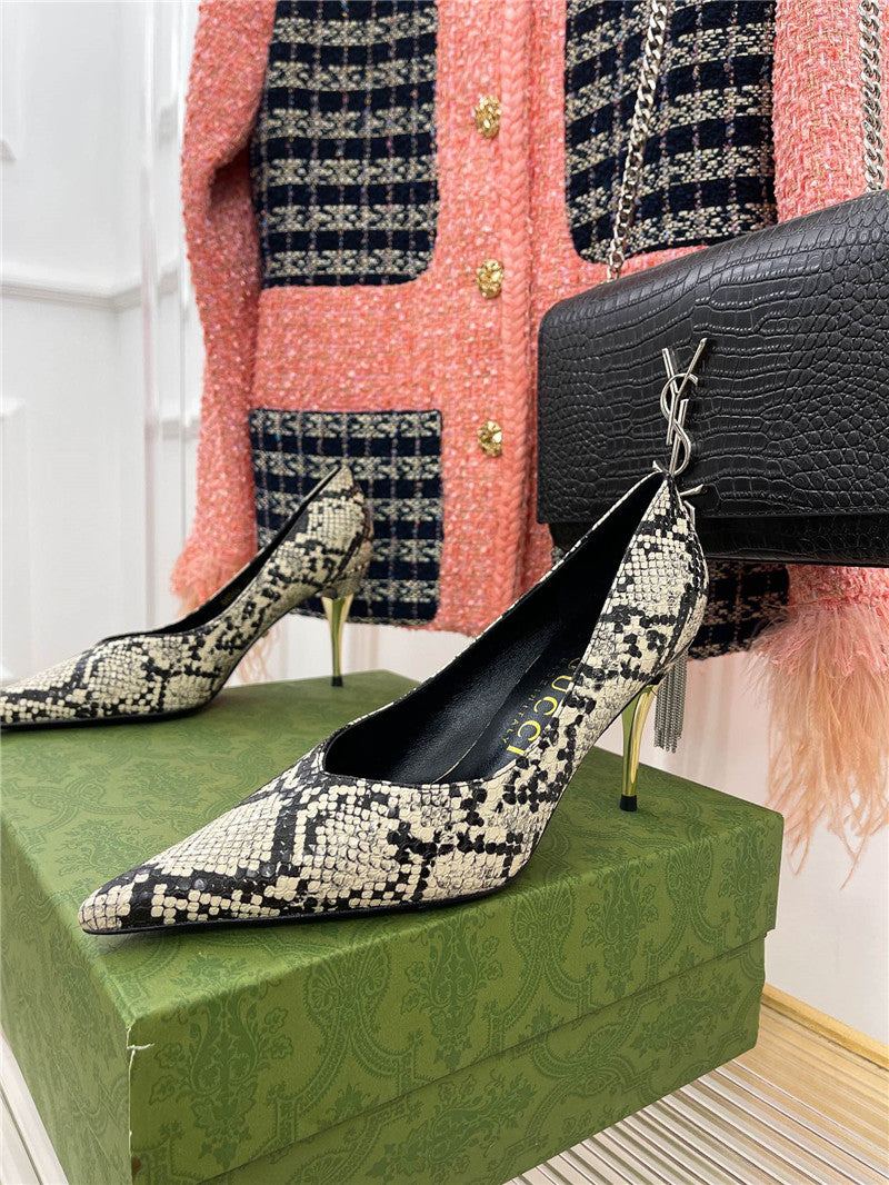 gucci metal heel pointed high heels