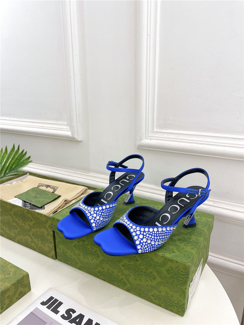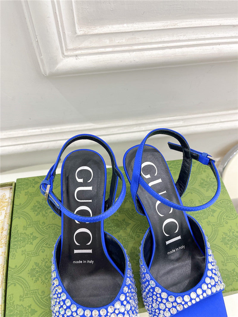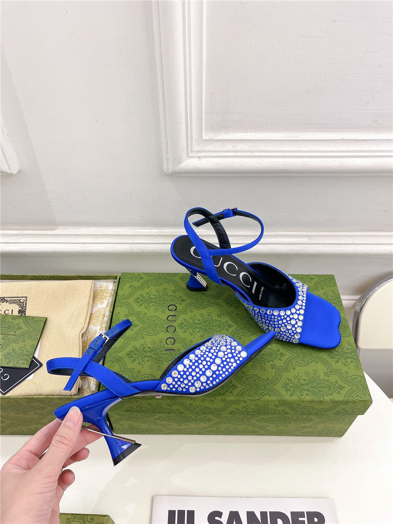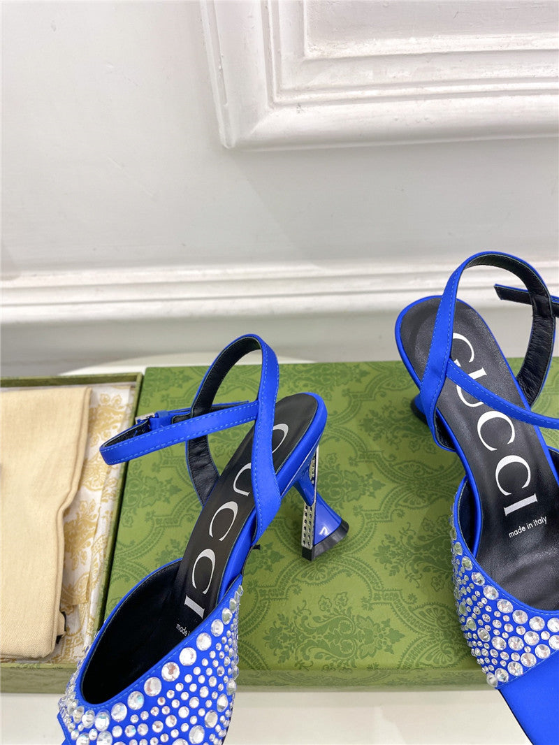 Amina Muaddi Floral Crystal Pumps Wineglass Heel Sandals