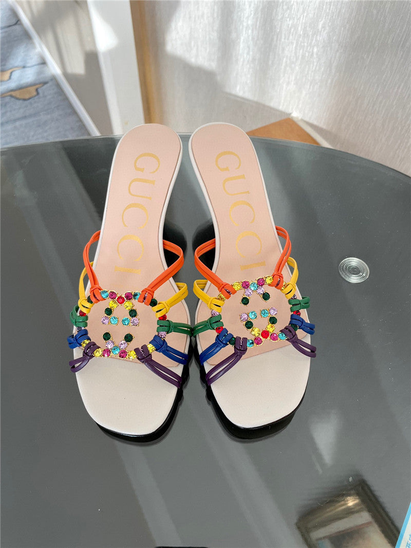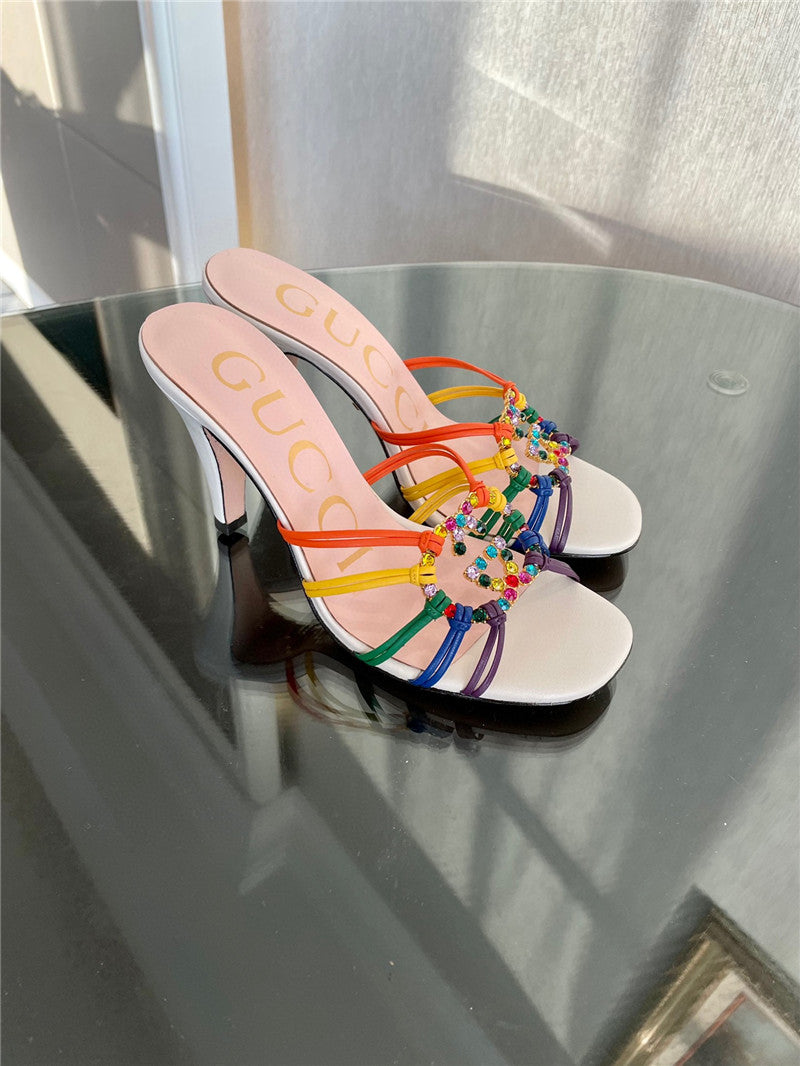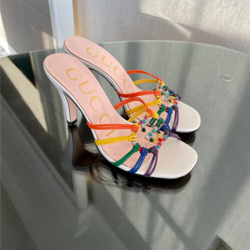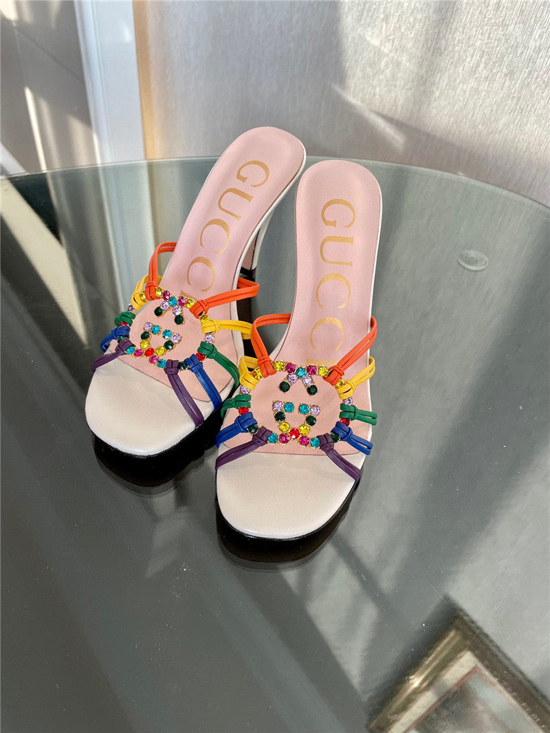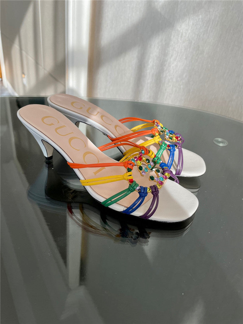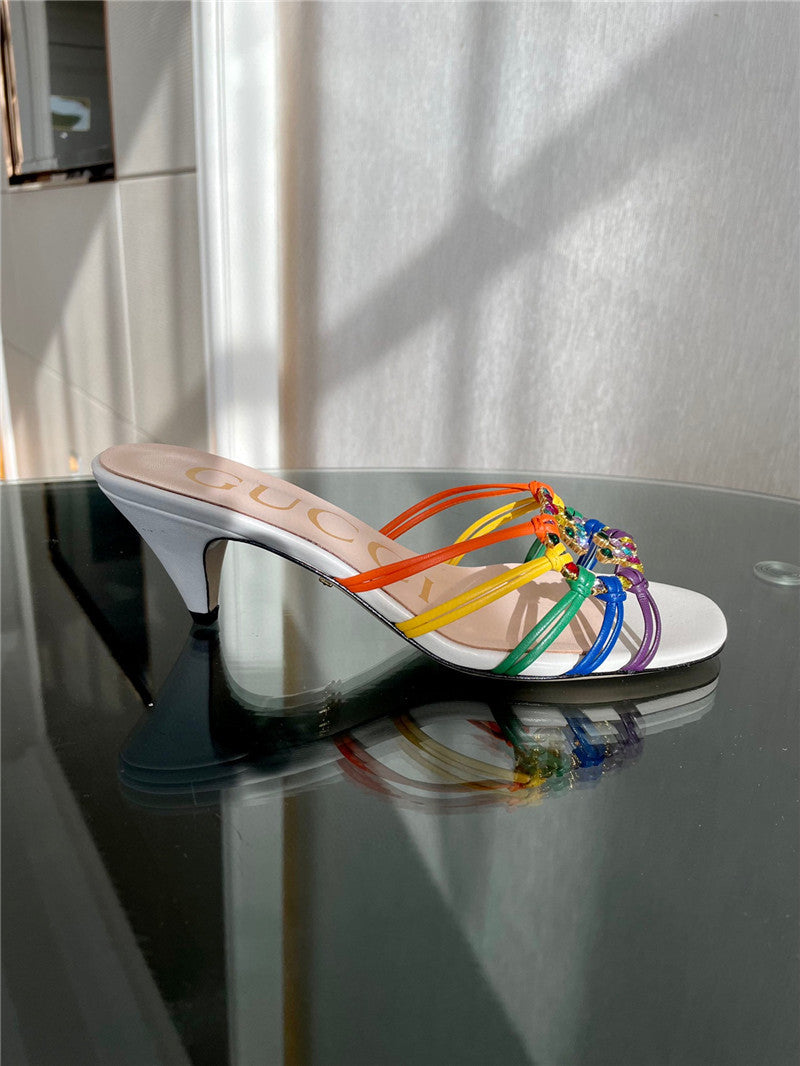 Amina Muaddi Floral Crystal Pumps Wineglass Heel Sandals