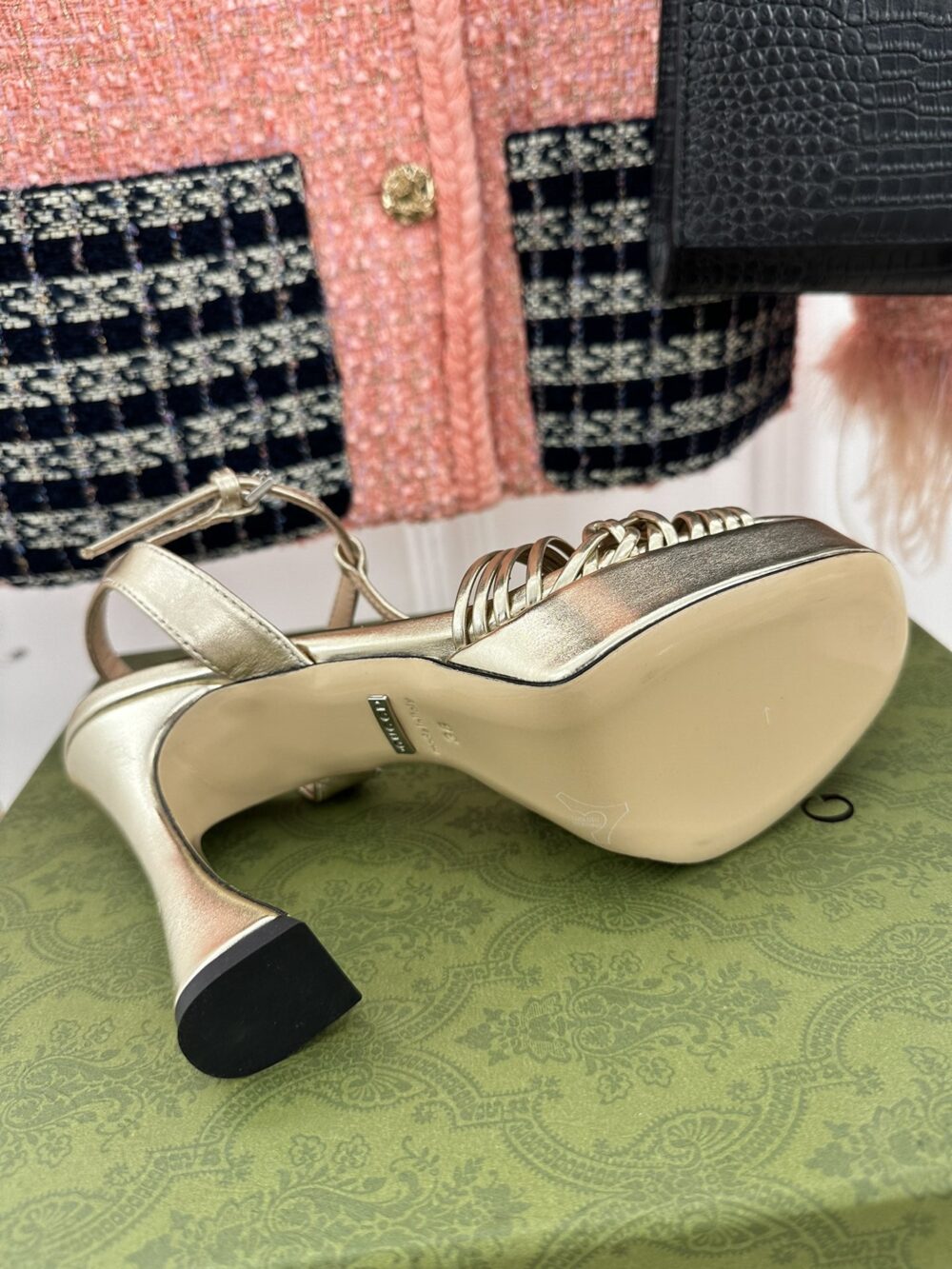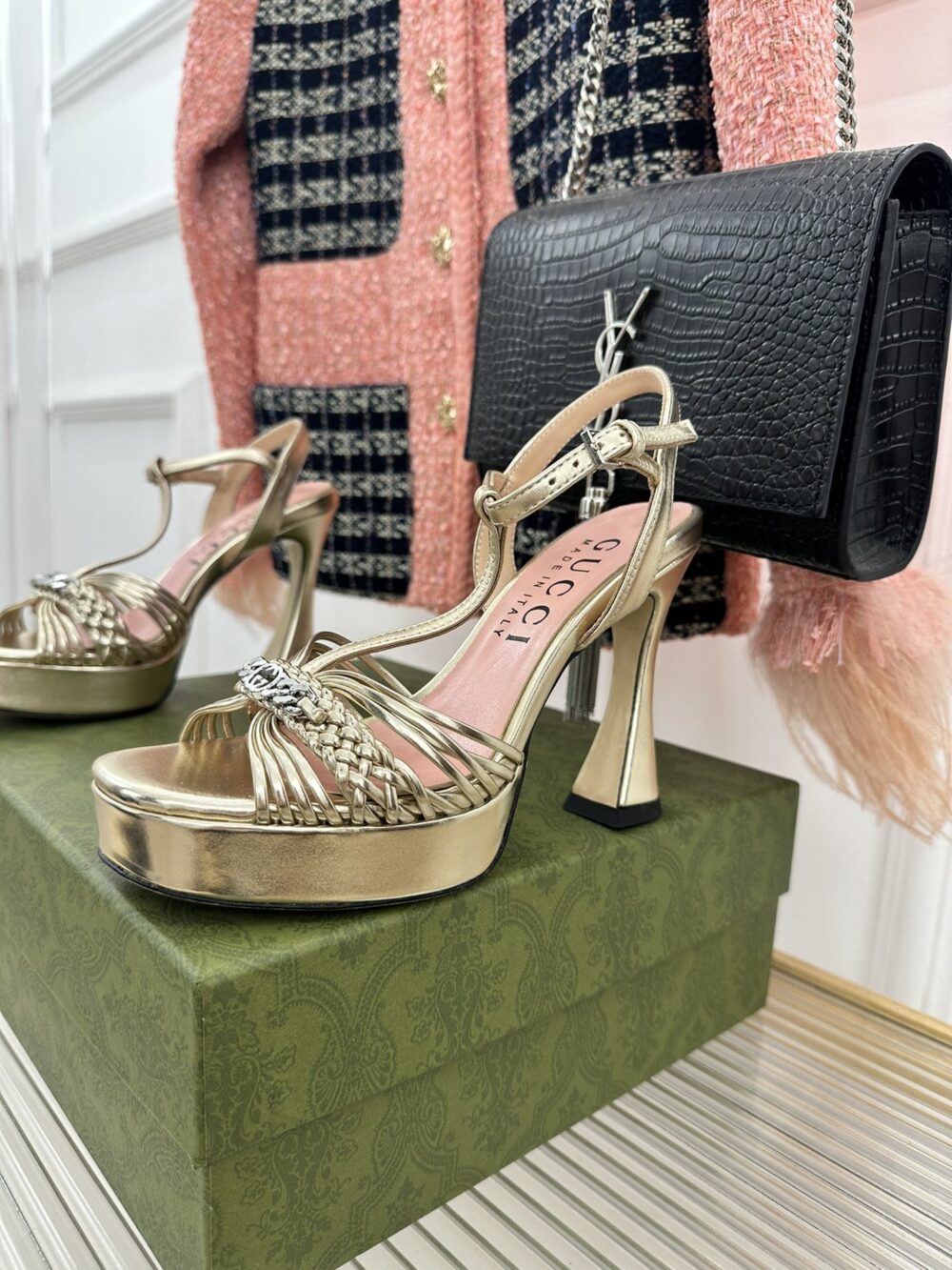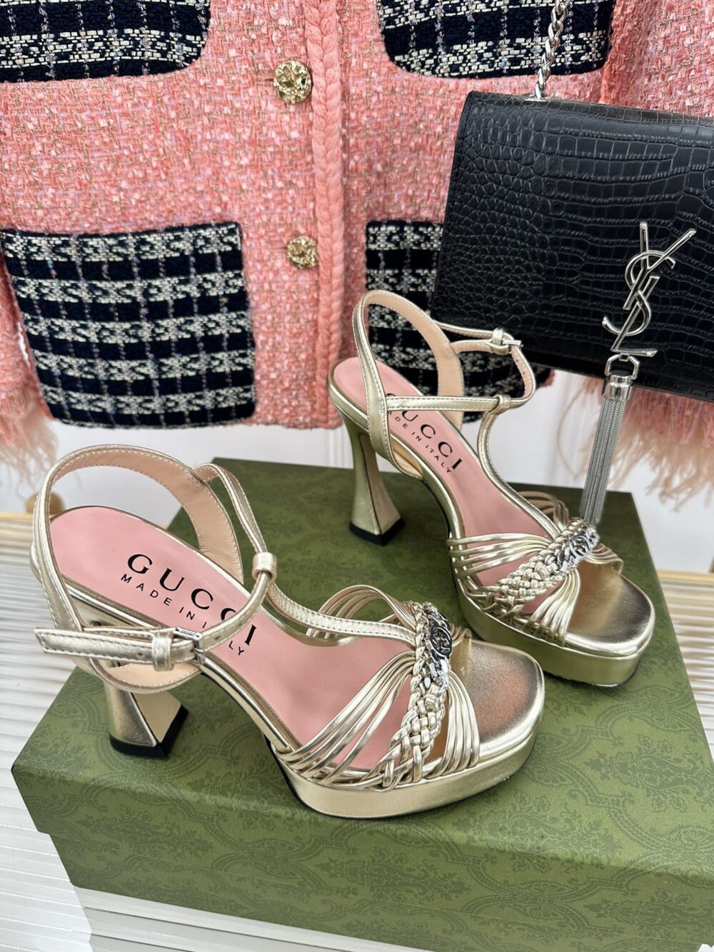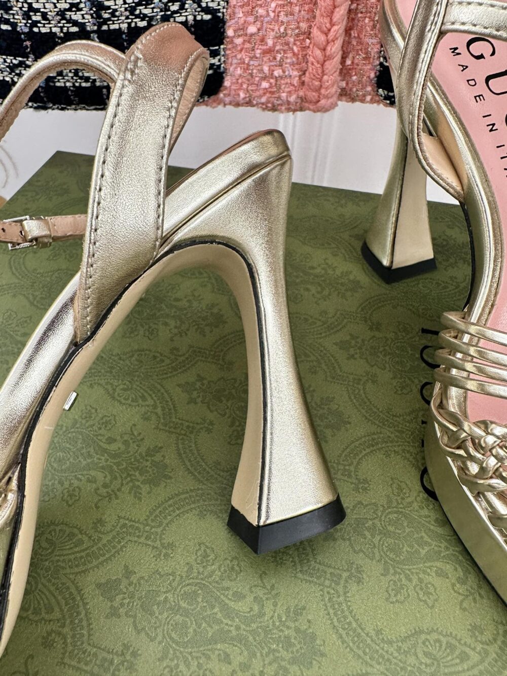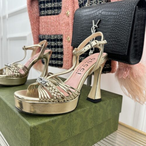 • gucci platform woven strap high heels