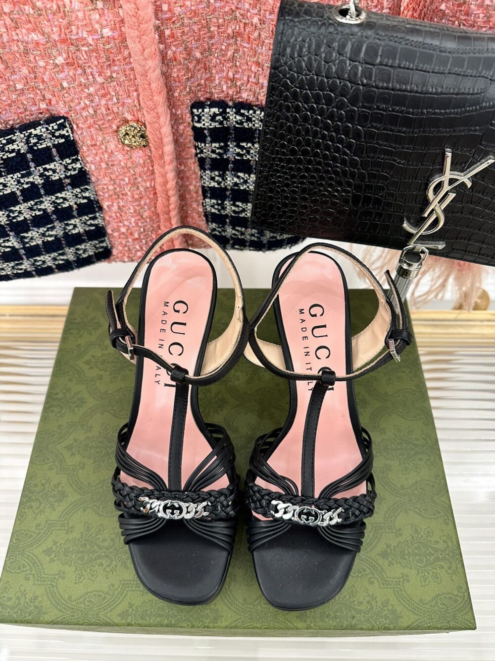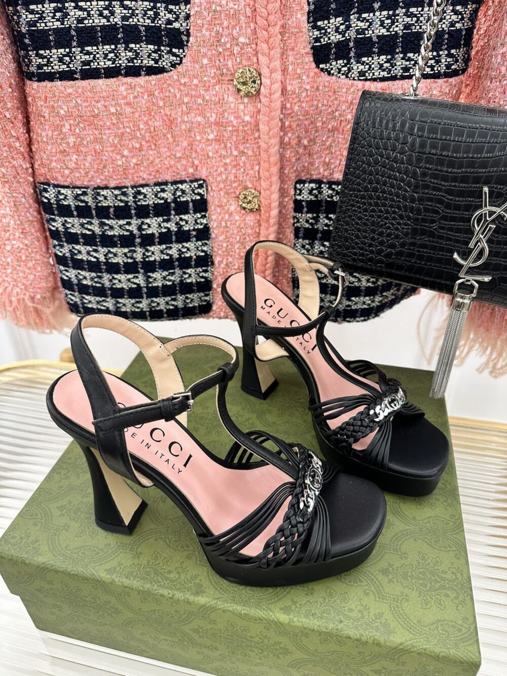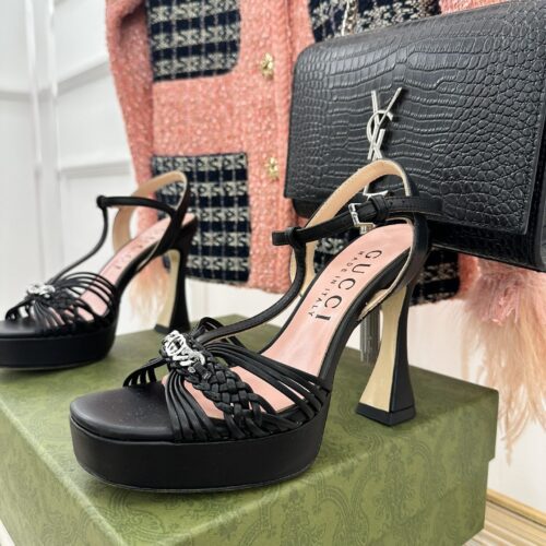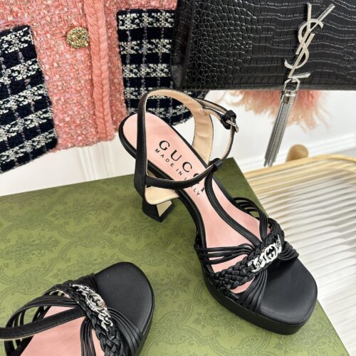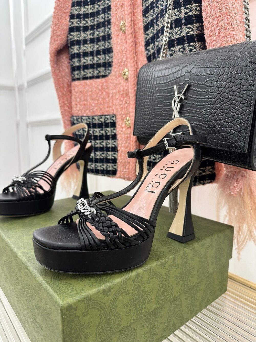 • gucci platform woven strap high heels
