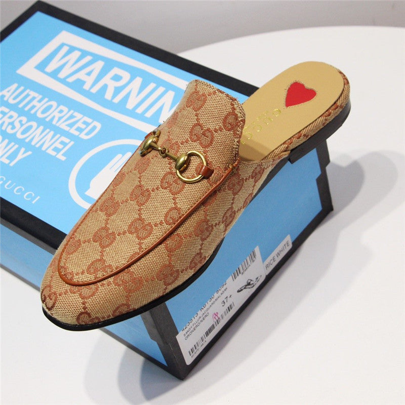 Gucci Princetown Leather Tiger Slipper Canvas GG