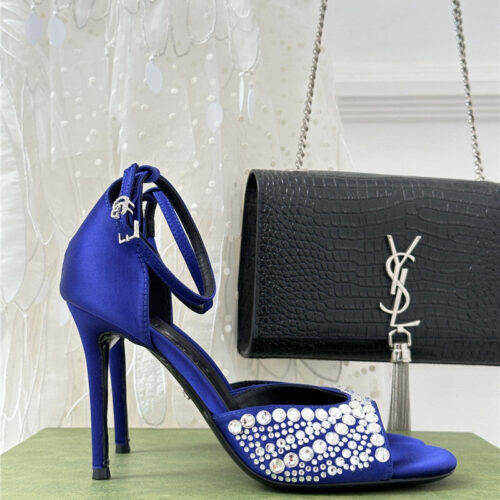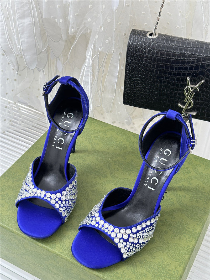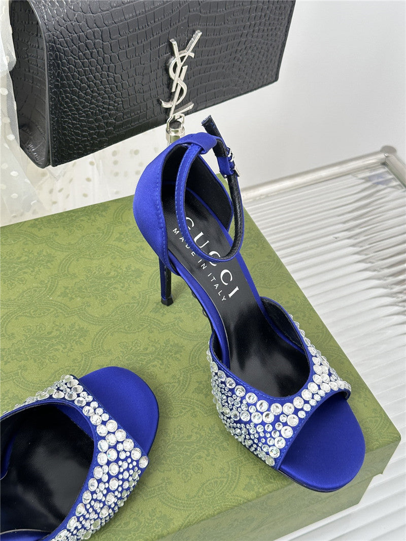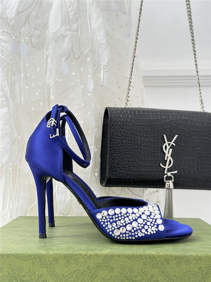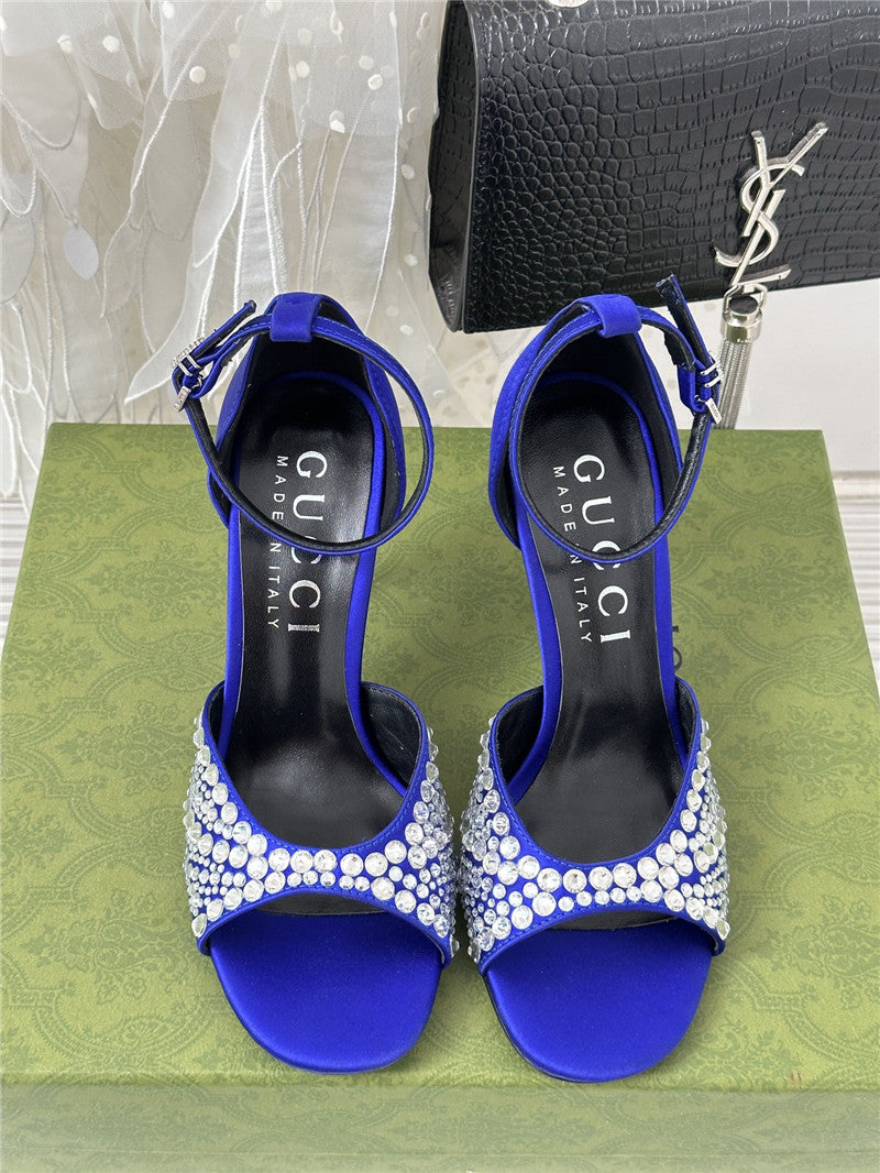 Amina Muaddi Crystal Heels Wine Glass Heel Sandals