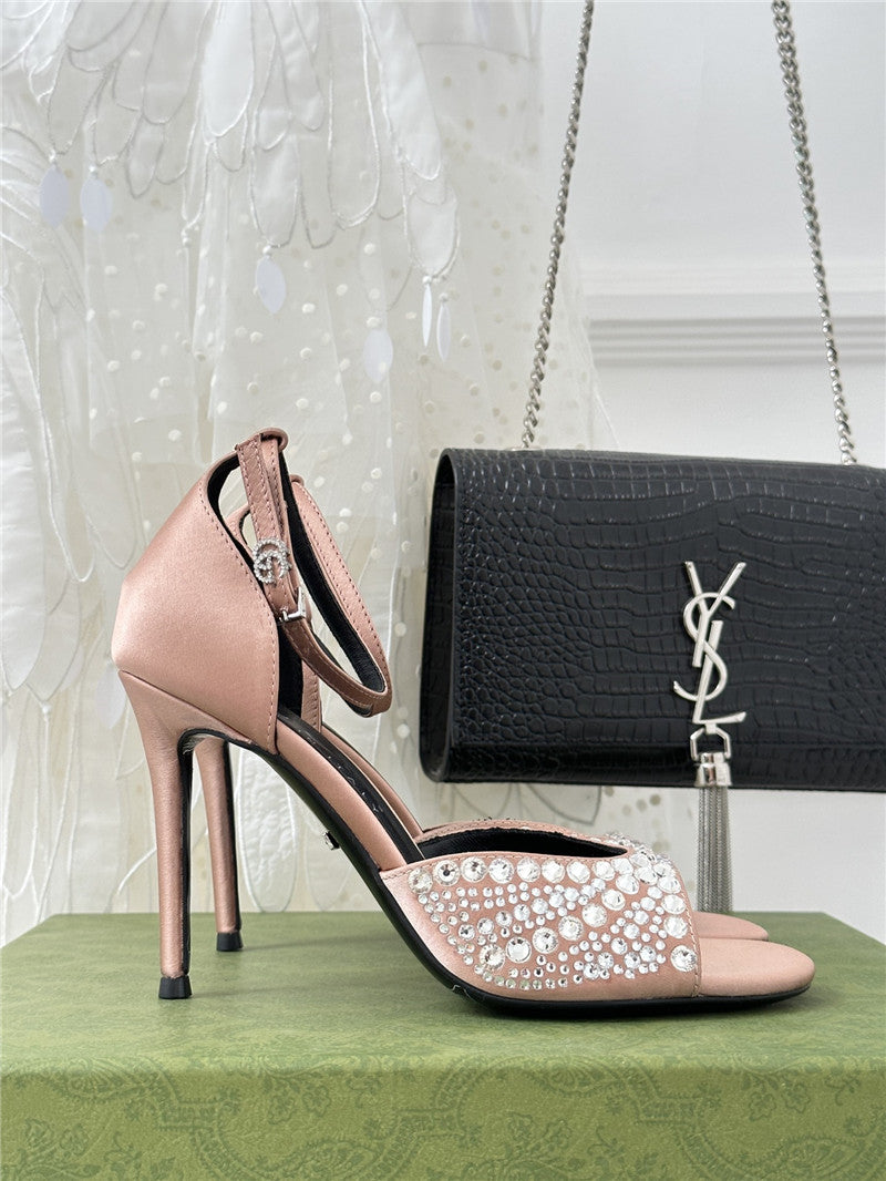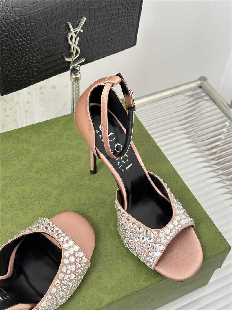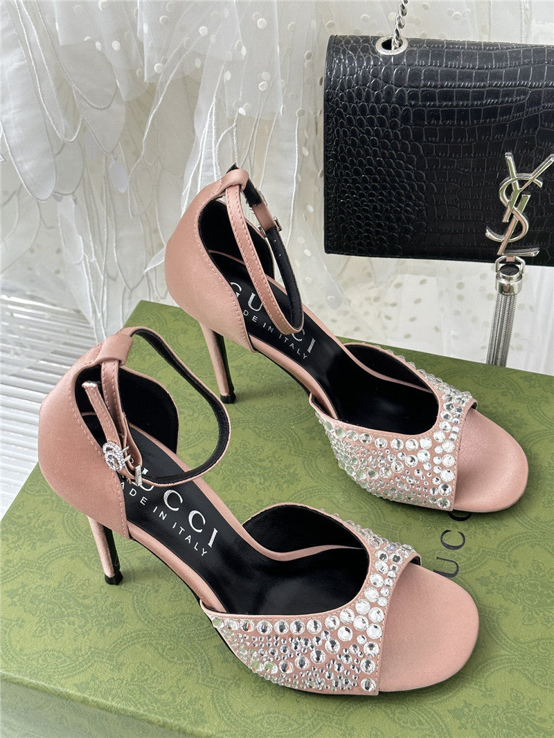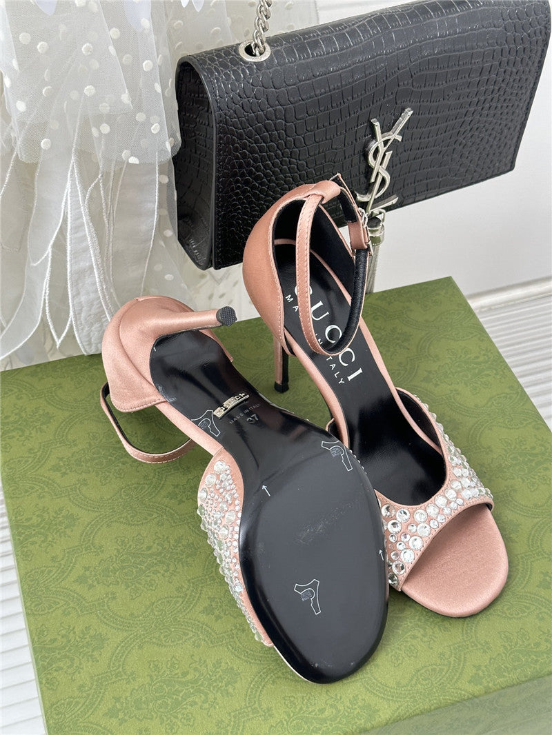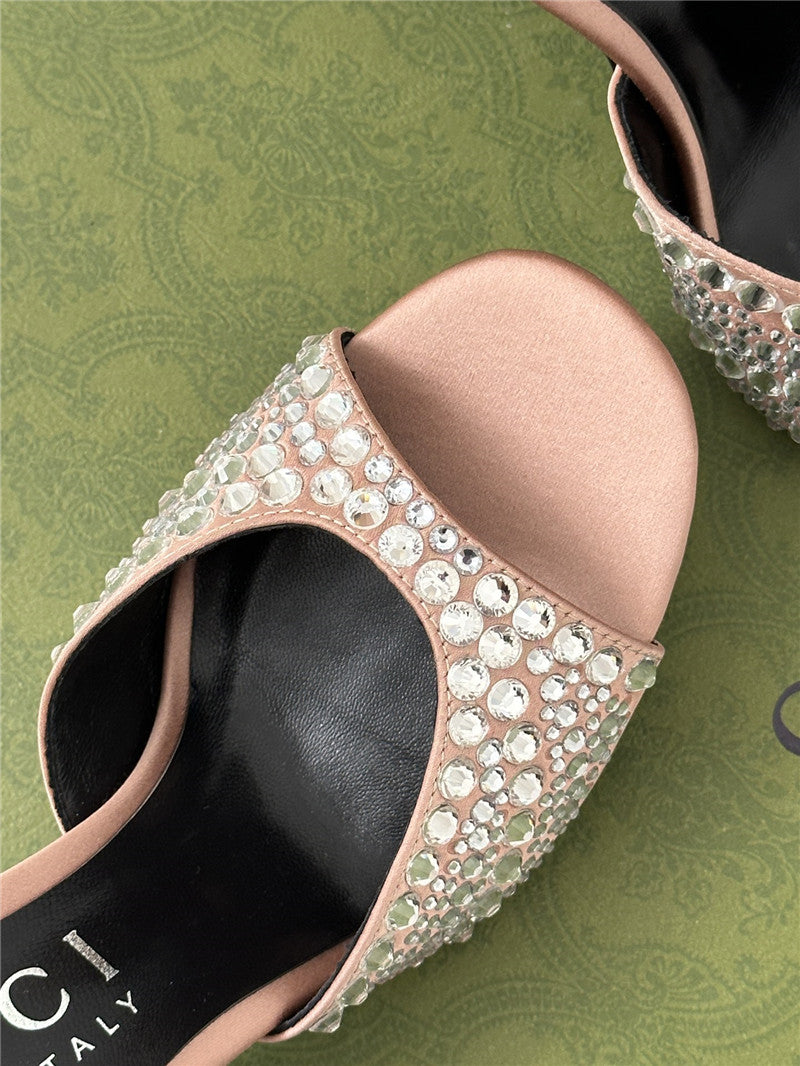 Amina Muaddi Crystal Heels Wine Glass Heel Sandals
