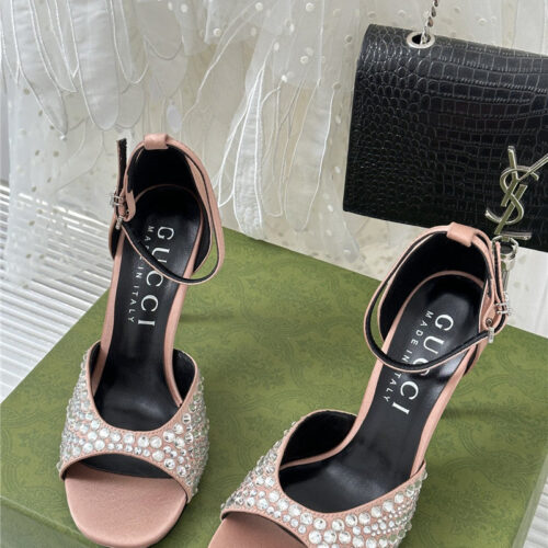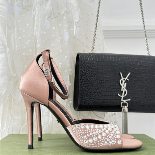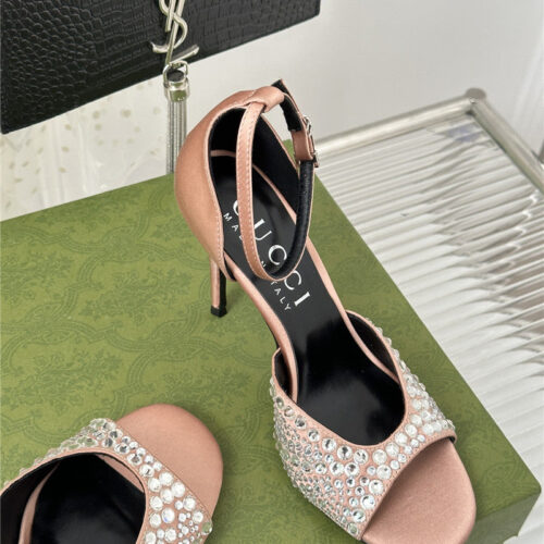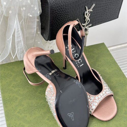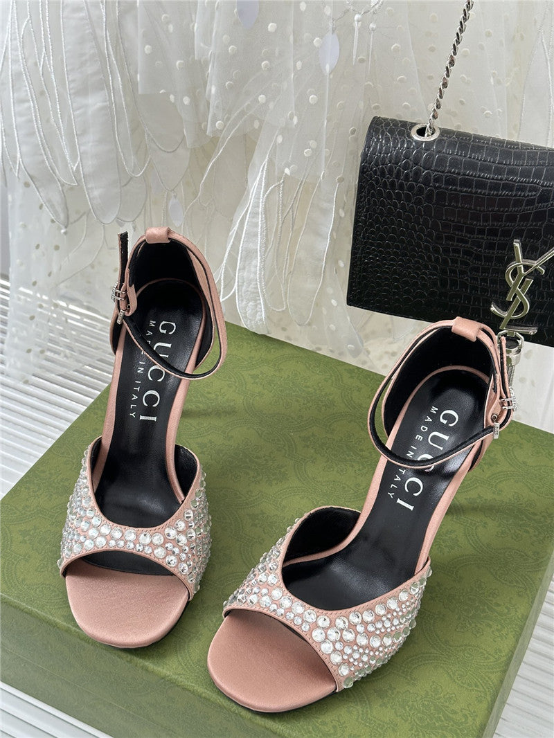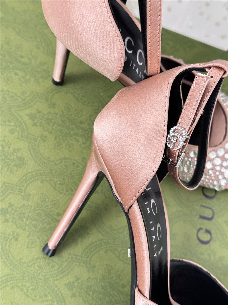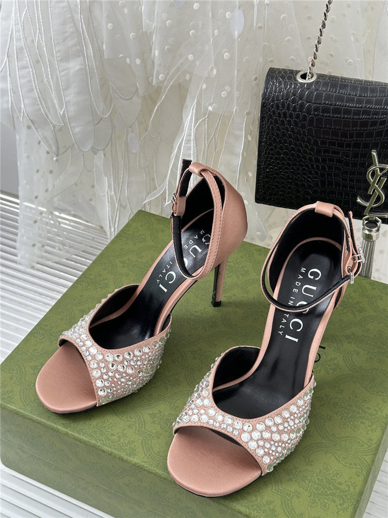 Amina Muaddi Crystal Heels Wine Glass Heel Sandals