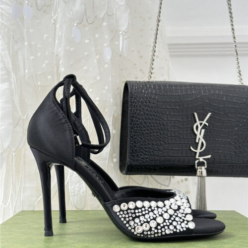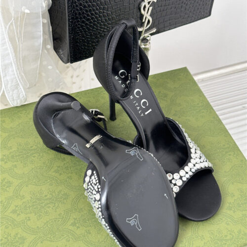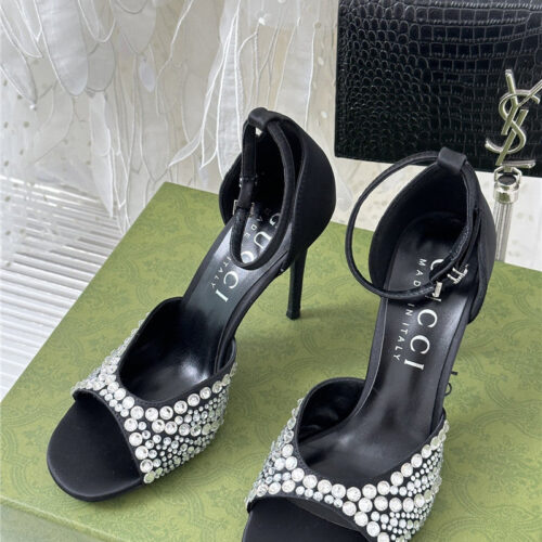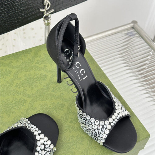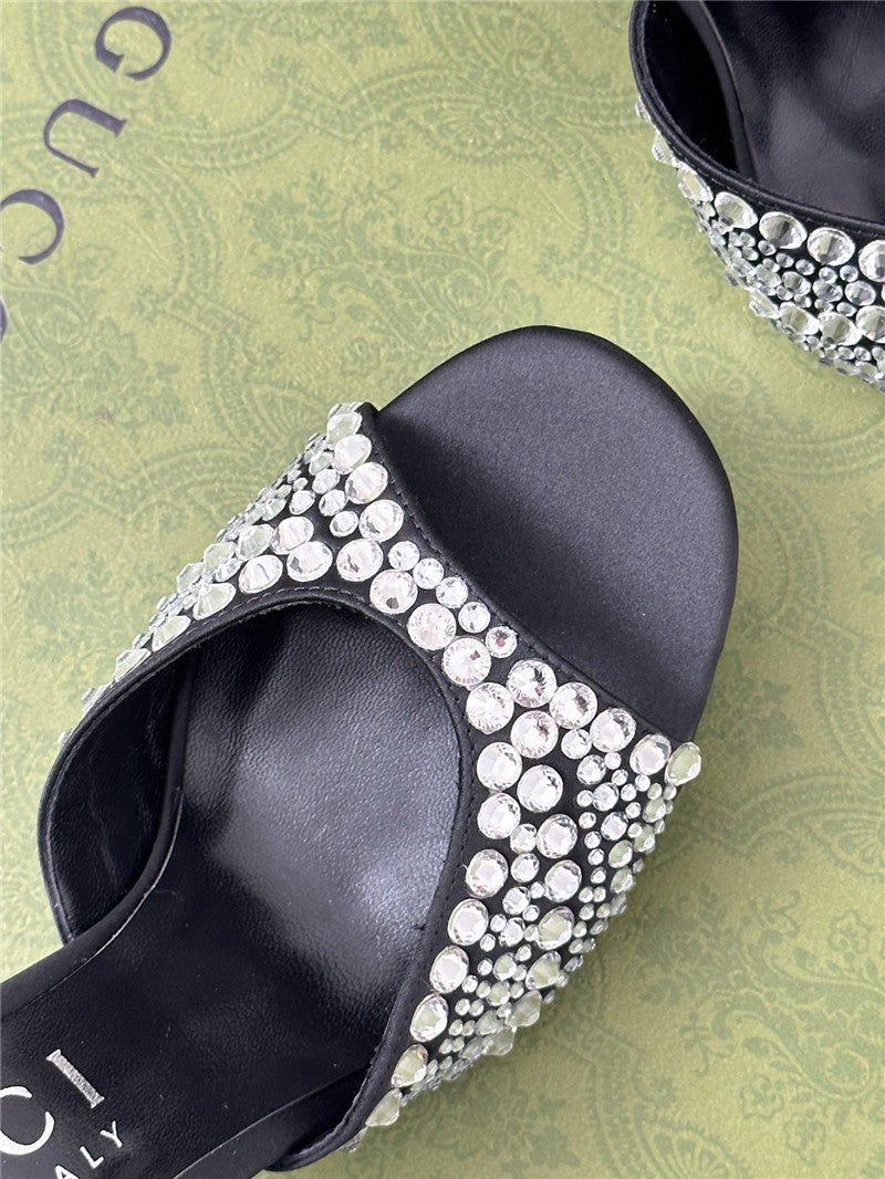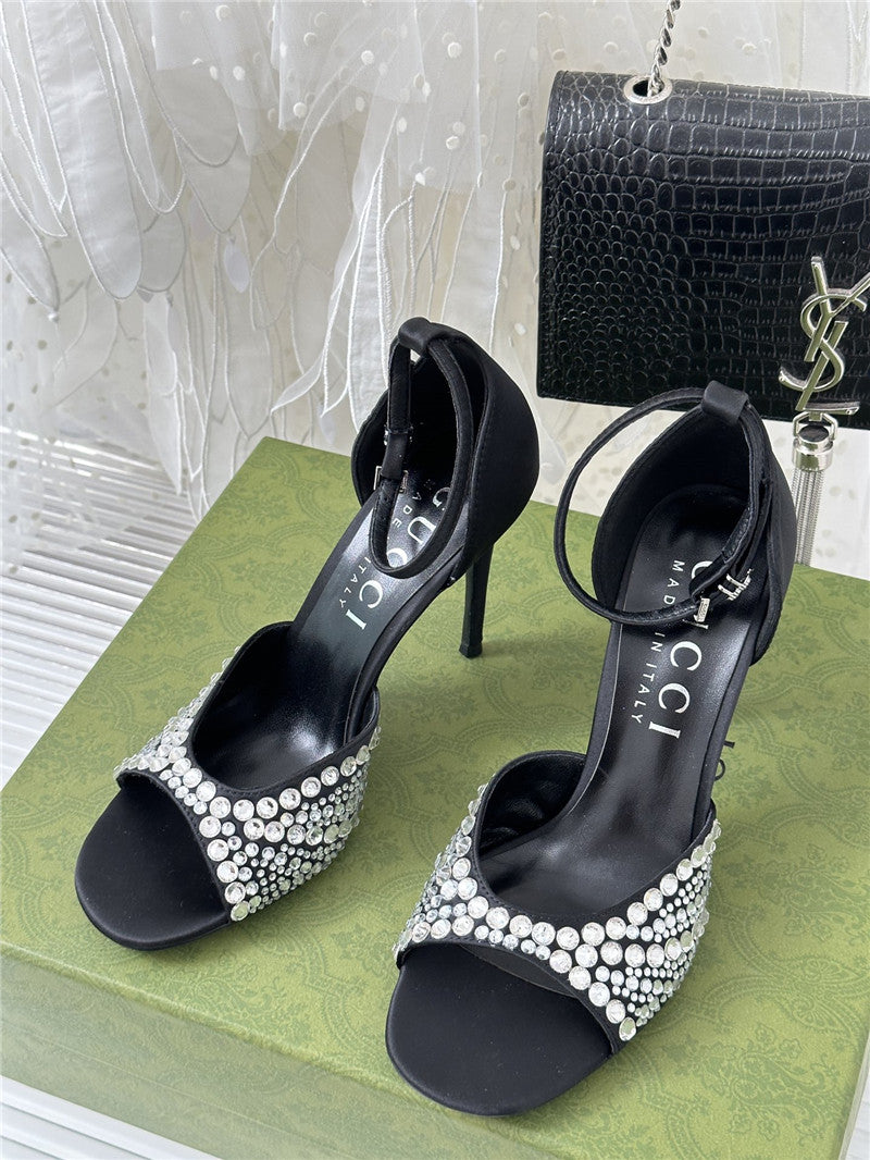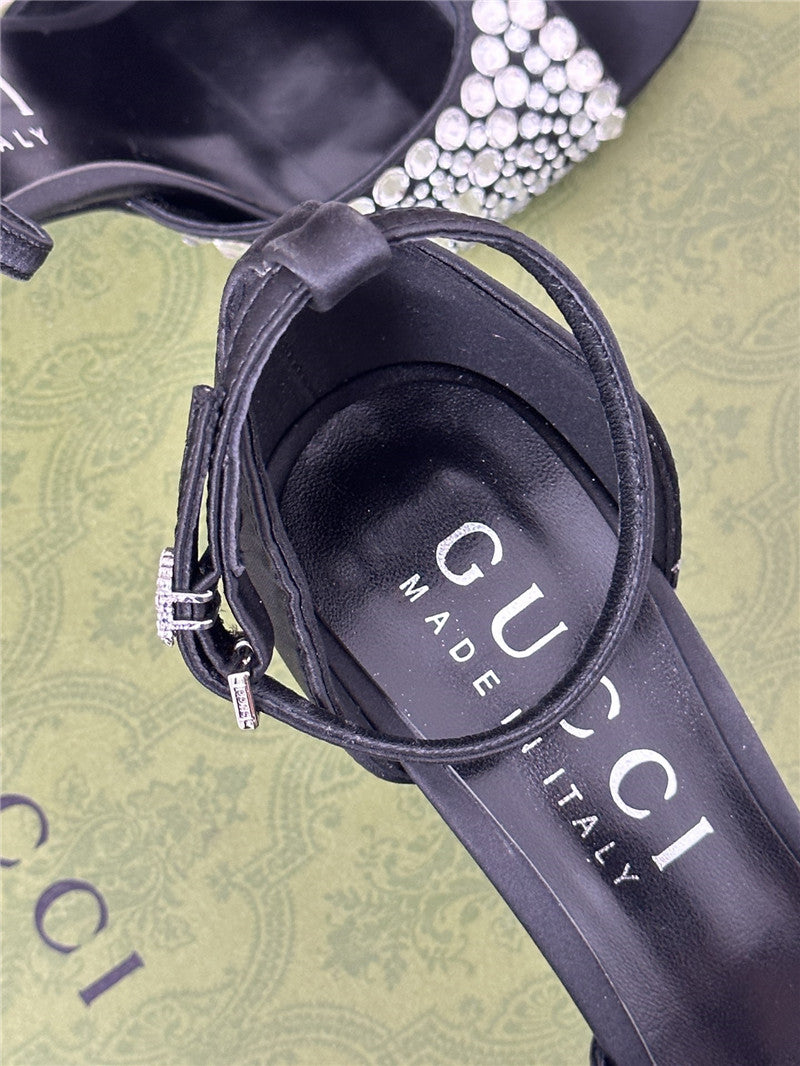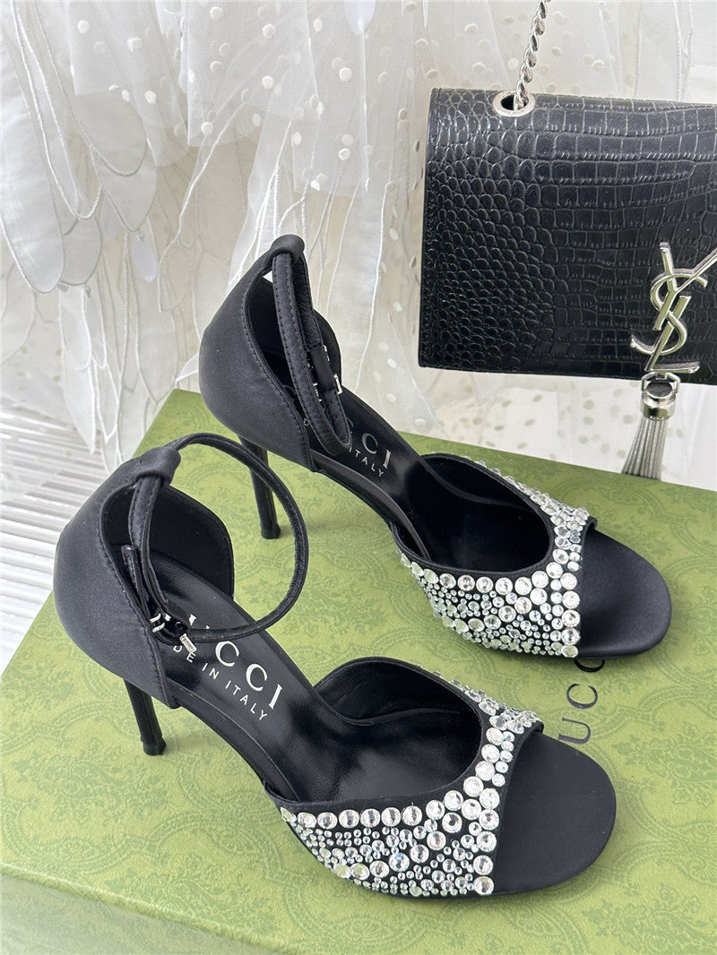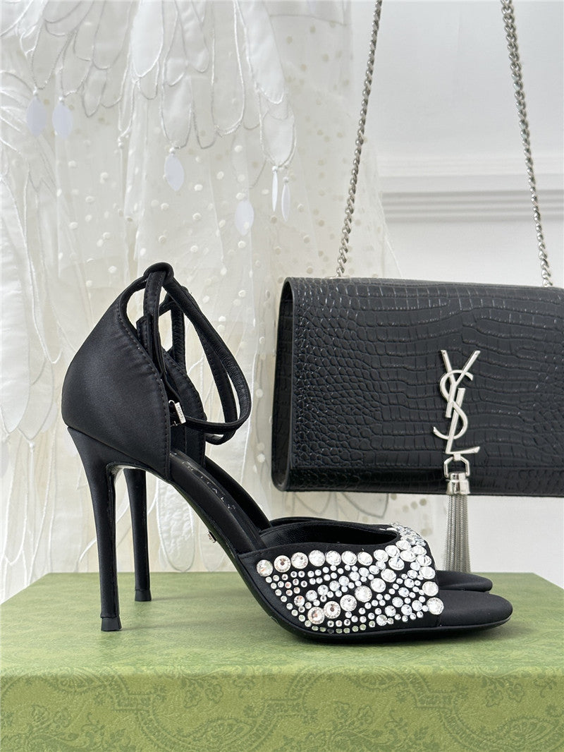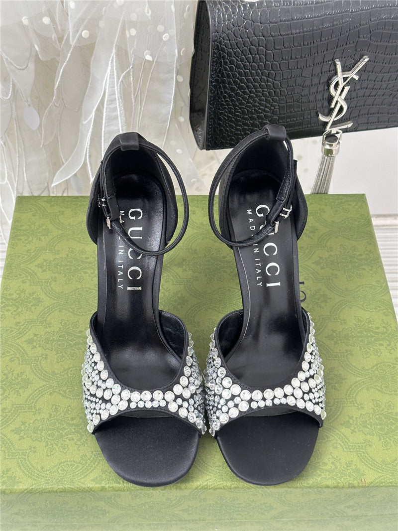 Amina Muaddi Crystal Heels Wine Glass Heel Sandals