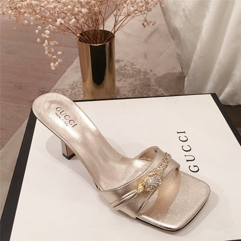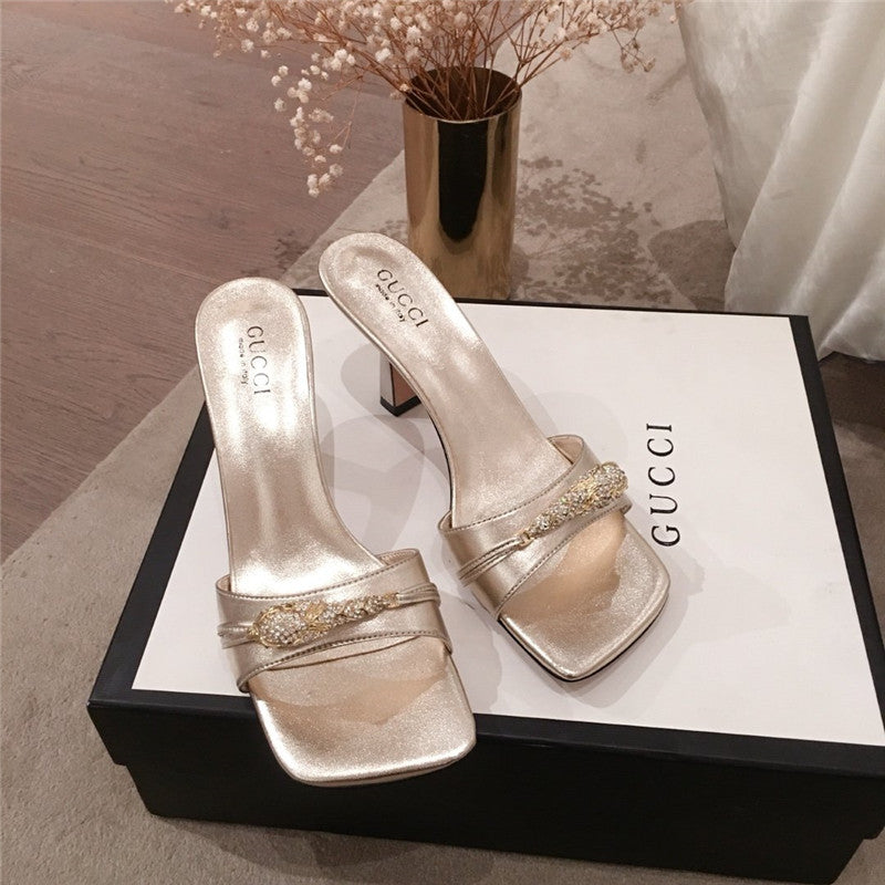 Amina Muaddi Crystal Heels Wine Glass Heel Sandals