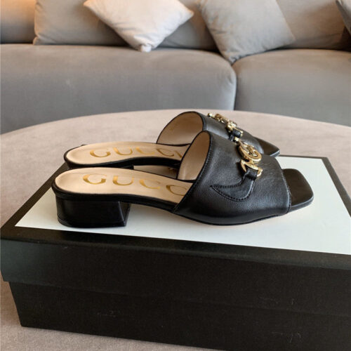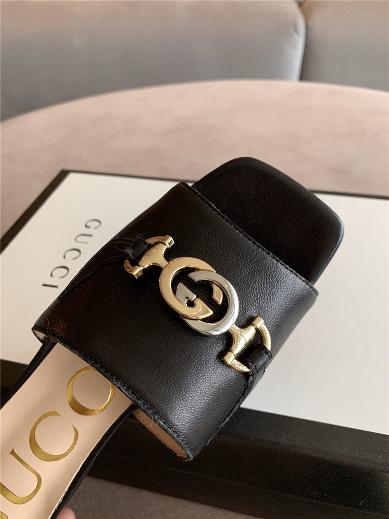 Gucci Sandals ZUMI calfskin Horsebit Detail black