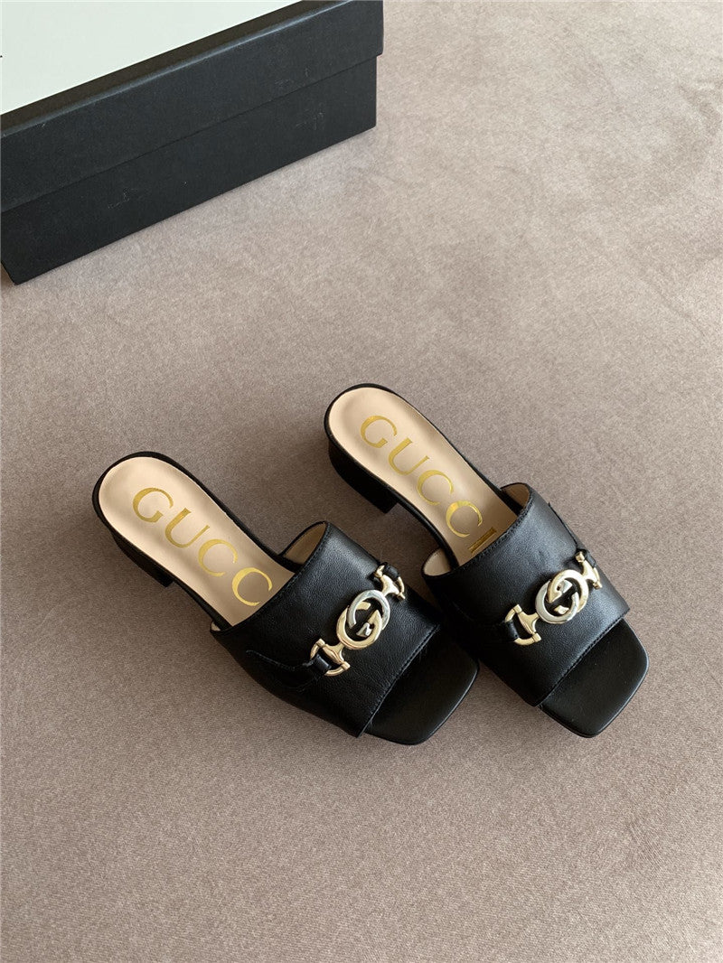 • Gucci Sandals ZUMI calfskin Horsebit-Detail black