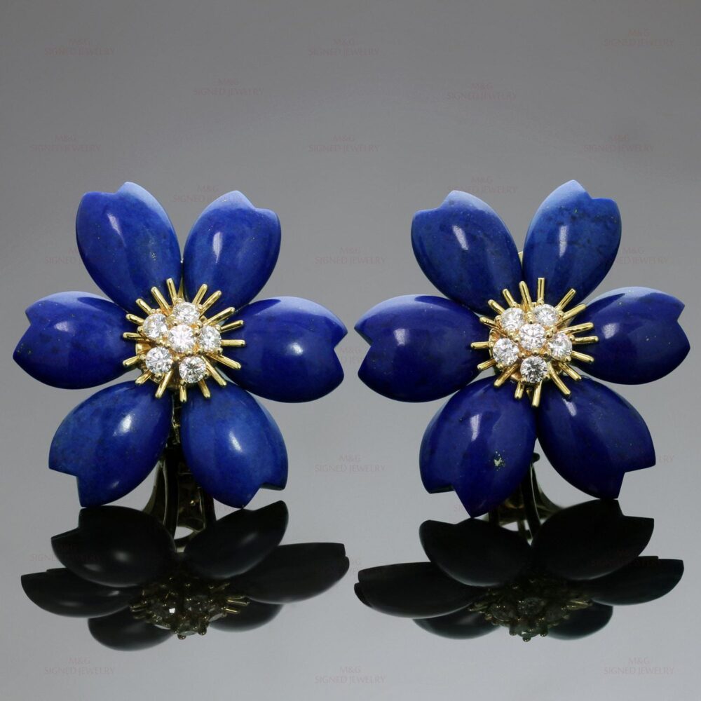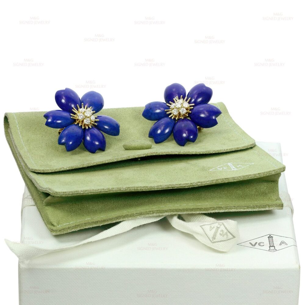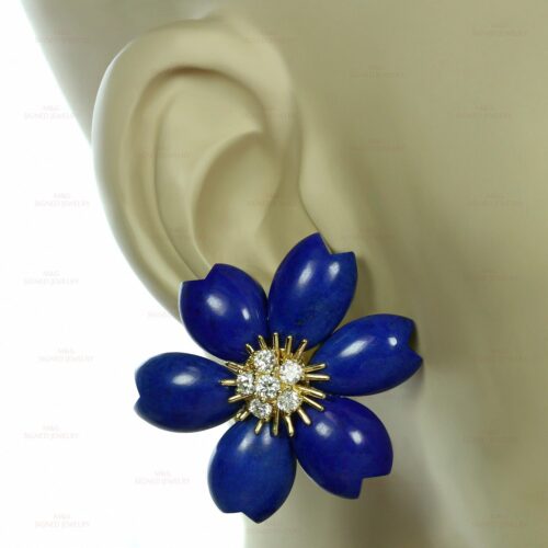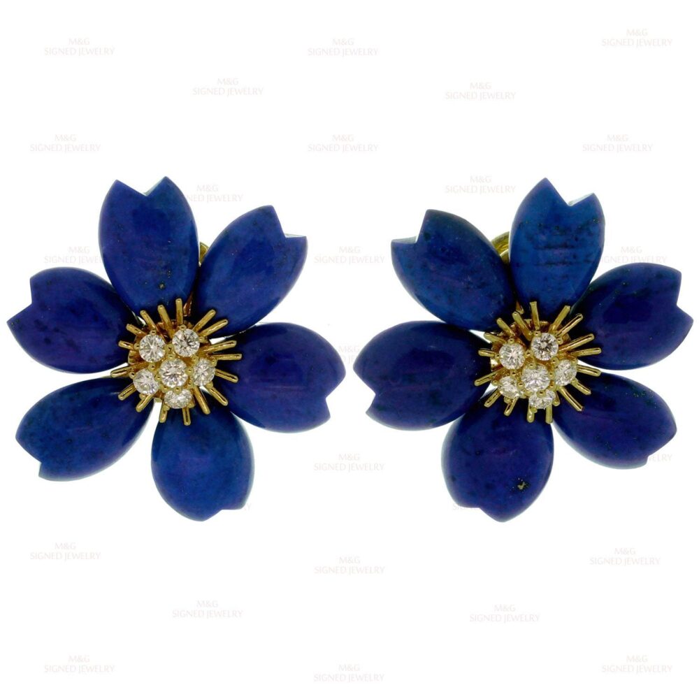 Van Cleef & Arpels Rose De Noel Lapis Lazuli Diamond 18k Yellow Gold Earrings